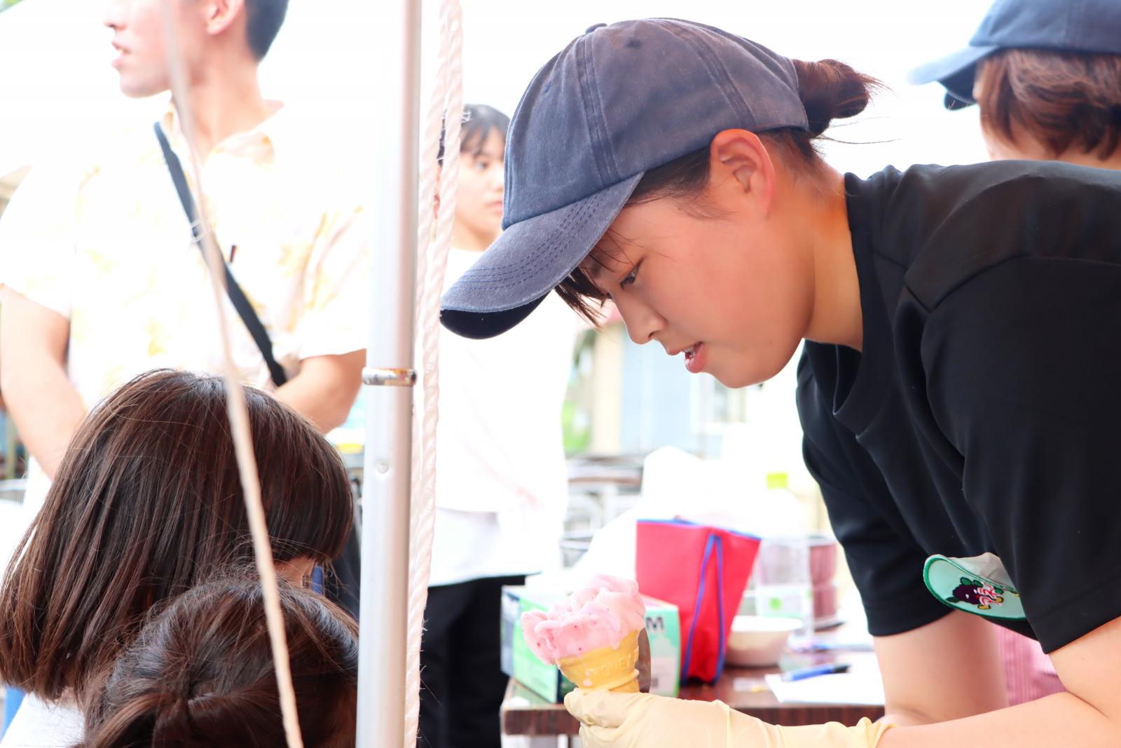 イベント当日は、開始と同時に途切れることなくアイスを買い求め、まとめ買いやおかわりをするお客様もおり、用意した約300食は完売しました。「さっぱりしていて美味しい」「素晴らしい取り組みで学生を応援したい気持ちになり購入した」「つぶつぶ食感が絶妙」「盛り付けが上手で感心した」など嬉しい声が聞かれ好評でした。