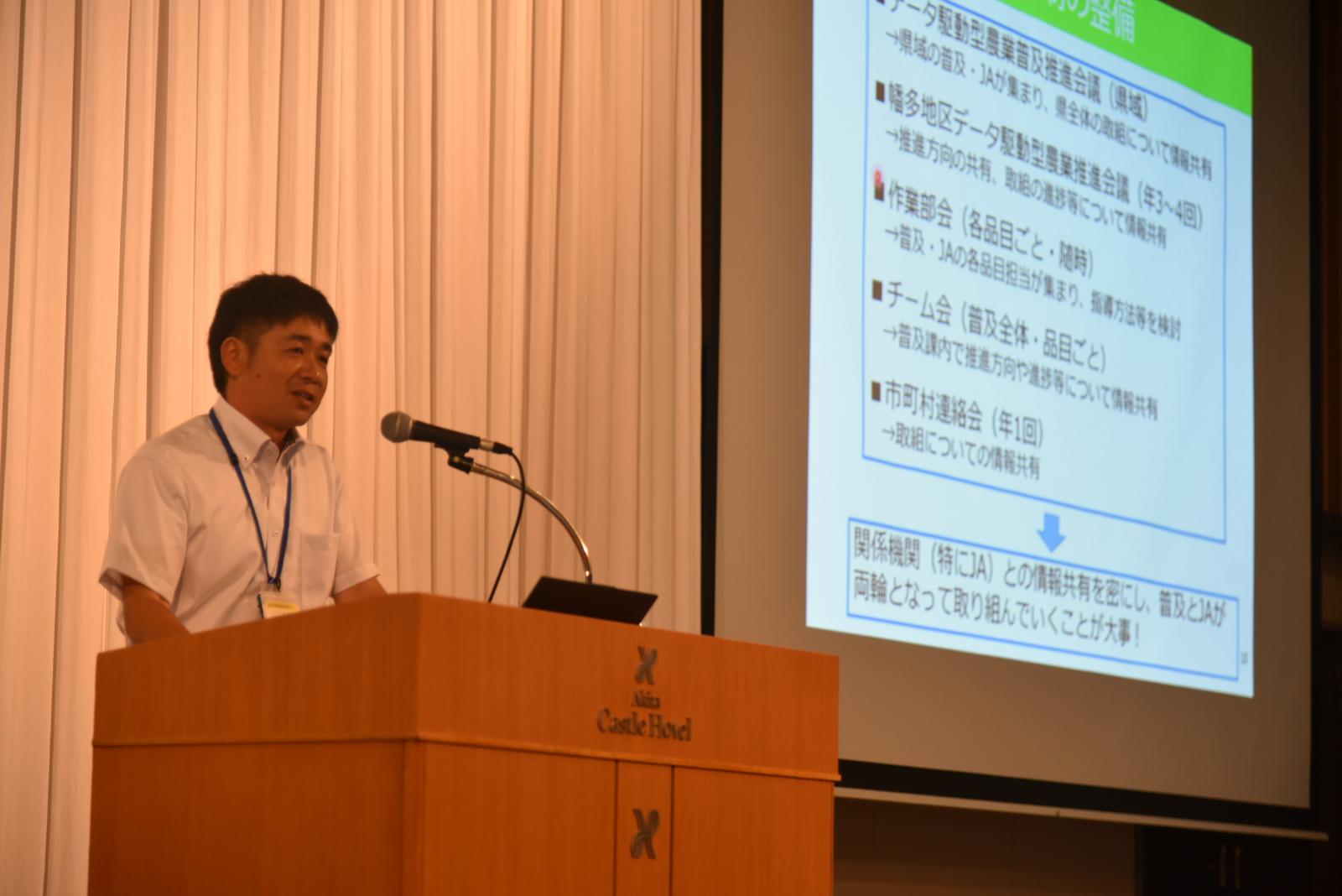 高知県農業振興部の岡林IoP推進監からは、「これまでの経験と勘だけではなく、データに基づく環境制御(ハウス内の温度や光などを制御すること)を組み合わせた場合、収量が5%から40%に増加した」、「施設園芸はデータ駆動型管理に最適であり、データに基づいて栽培管理を毎日改善できる」などといったデータ駆動型農業の取り組みの現状や長所をお話していただきました。