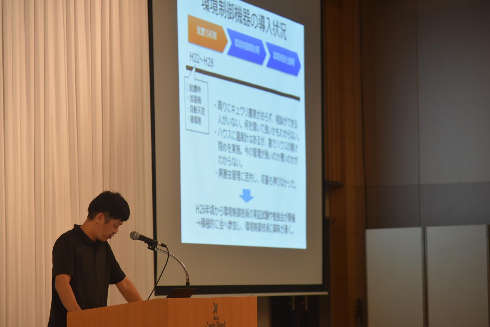 また、キュウリ生産者の方からは「データ共有グループを結成したことで 、若手農家間での競争意識を持ち始めた」、「ほ場に直接行かなくても、他生産者の環境状況を把握・比較することで、自身の栽培管理に自信が持てた」といった話をしていただきました。
