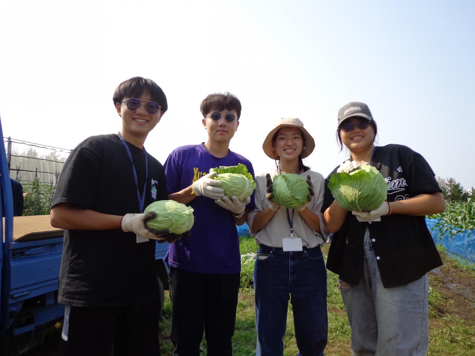 キャベツとトウモロコシの収穫を体験