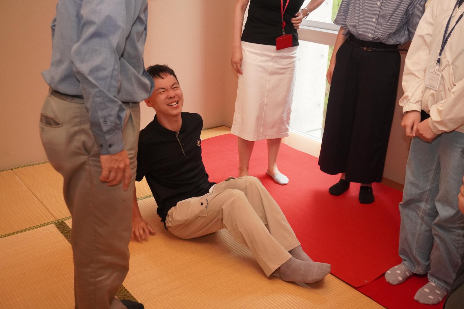 長時間の正座で足が痺れてしまう様子も...