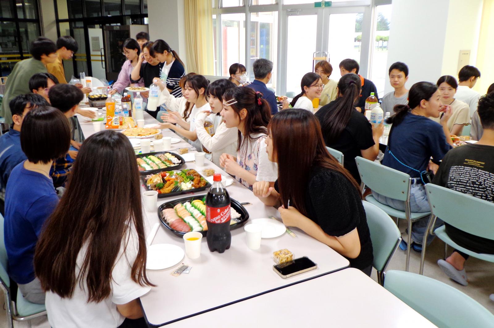 学生寮「清新寮」内で送別会