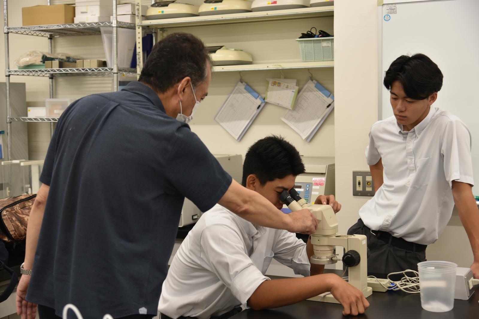 各先生方から機器の基本的な使い方を教わった後に、実際に実験に取り組んでいました。専門的な内容にも積極的に取り組み、課題研究へのモチベーションに繋がっているようでした。