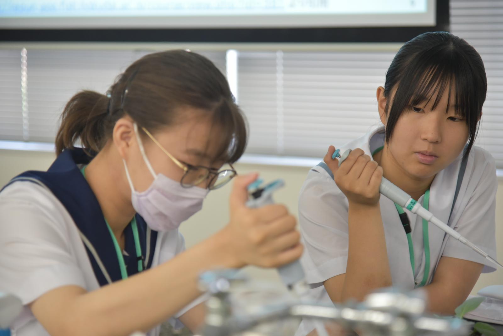 高校生の皆さんは、大学生さながら各実験室で高度な内容の講義と実験を体験しました。さらに、今年度から「結果報告&考察発表」を行い、高校生と担当の講師が実験結果についてディスカッションを行いました。生物と化学の奥深さを知ると同時に、より生物資源の世界に興味を深める機会となったと思います。