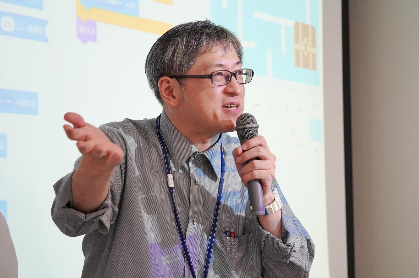 午後の部「実装を楽しく学ぶマイクロビットクラス」では、マイクロビット使って搭載されたセンサーで明るさを測るプログラムや、赤ちゃんが寝返ると音が出て、赤ちゃんのうつぶせ寝を発見するプログラミングに挑戦しました。
