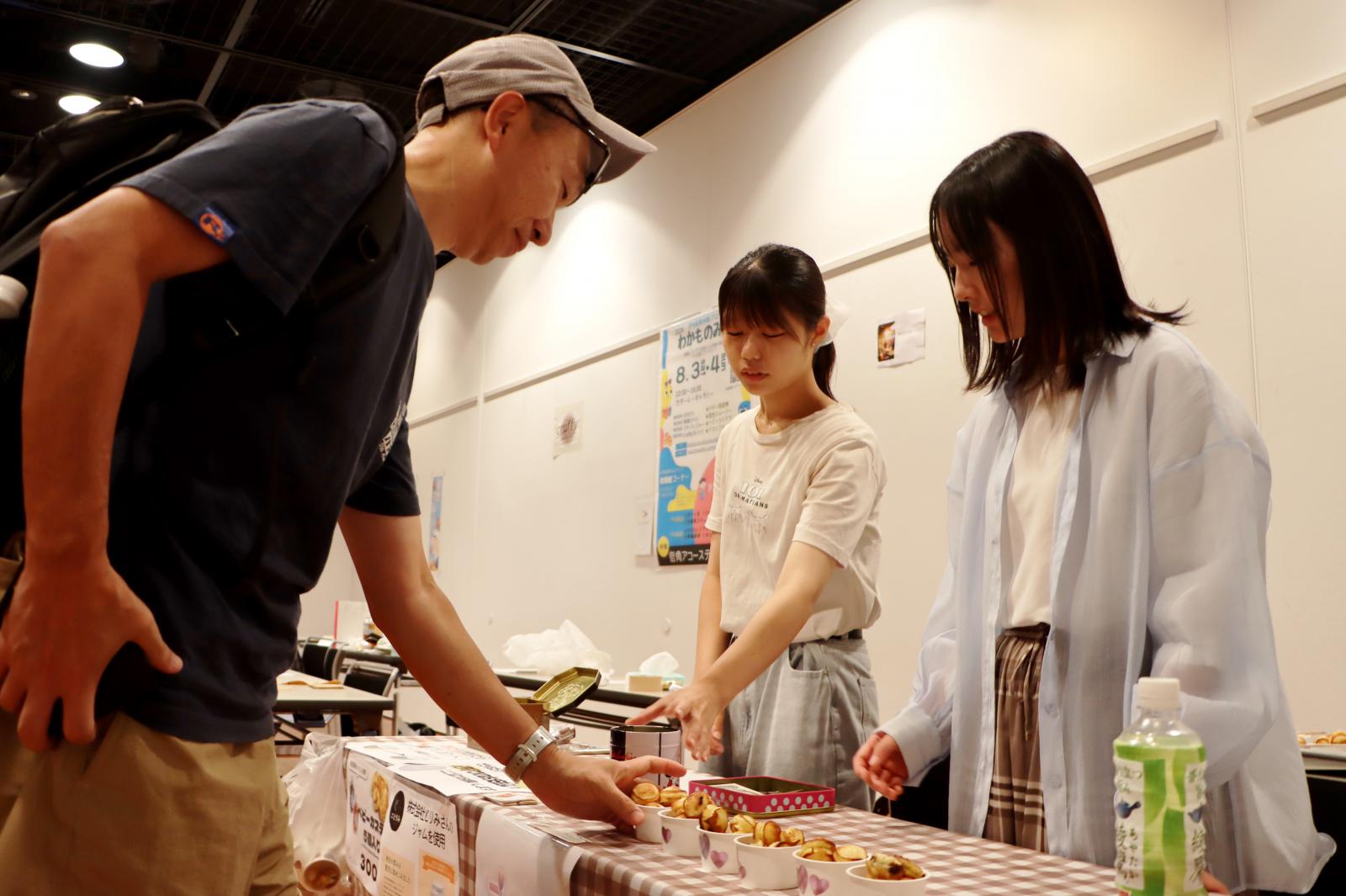 同イベントは、経営システム工学科の嶋崎真仁教授[NPOイノベヤ理事長]が主導し、東京証券取引所のバックアップを受けてリアルな起業体験ができるプログラム「JPX起業体験プログラム2024」で起業した4社(県大生3社、高校生1社)が、模擬店を出店、販売するイベントです。