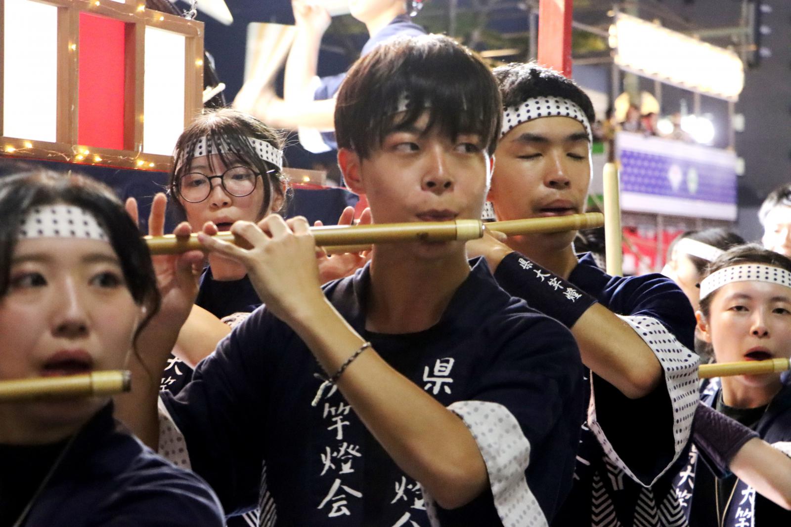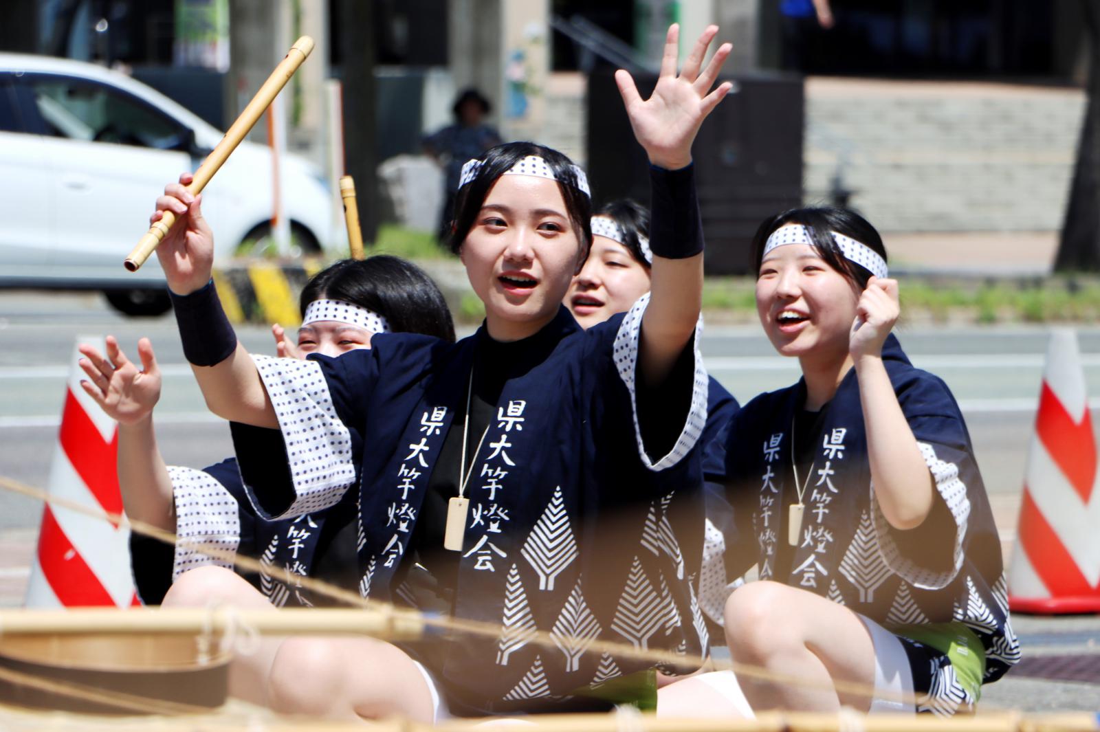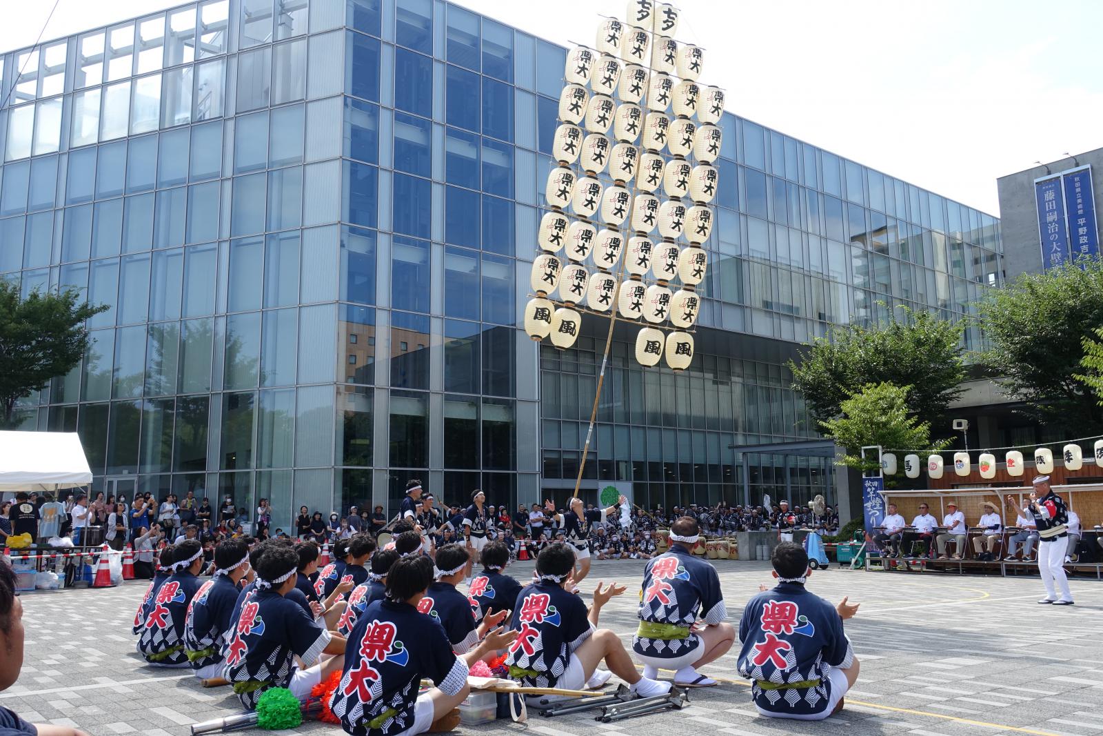 5日、秋田市のエリアなかいちで開催された妙技会の予選では、本学は大若囃子方、大若個人で予選を通過。6日に行われた決勝でも積み重ねた練習の成果を存分に発揮し、大若囃子方が第4位、大若個人の大久保武矢さんが第7位に入賞しました。また、本学卒業生で組織する秋田県立大学燈和会の米谷俊司さん(生物環境科学科卒、生物資源科学研究科修了)が堂々の第3位、高橋一成さん(応用生物科学科卒、生物資源科学研究科修了)が第6位に入賞しました。