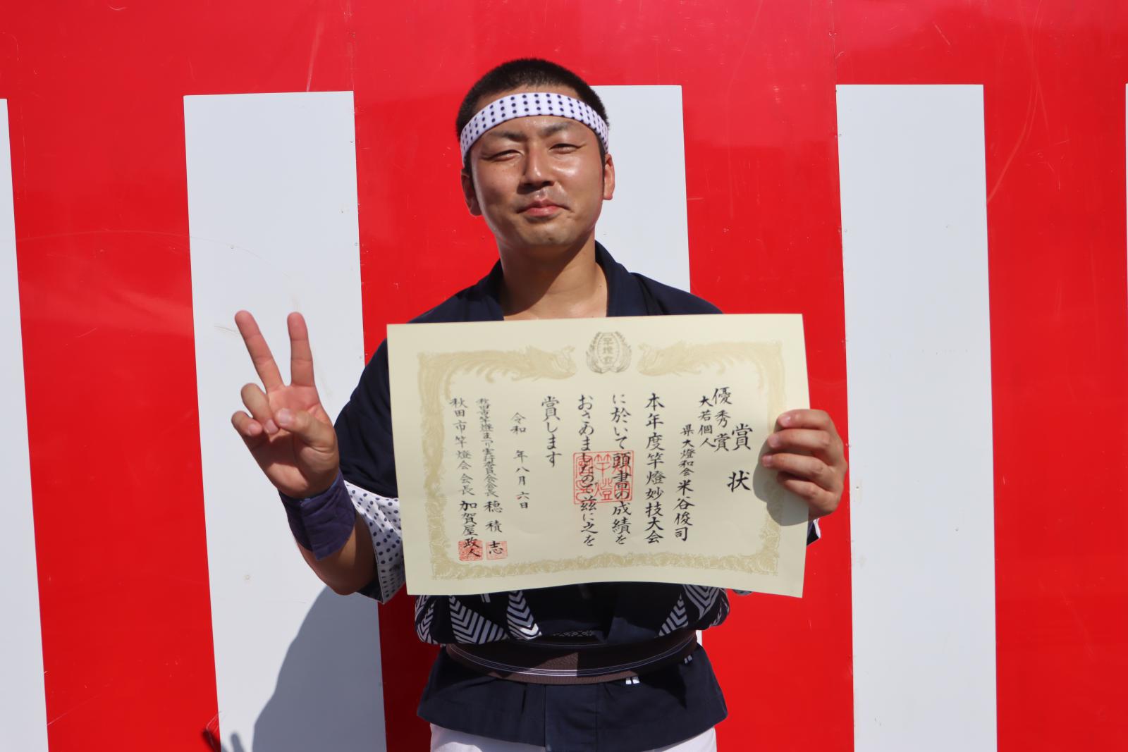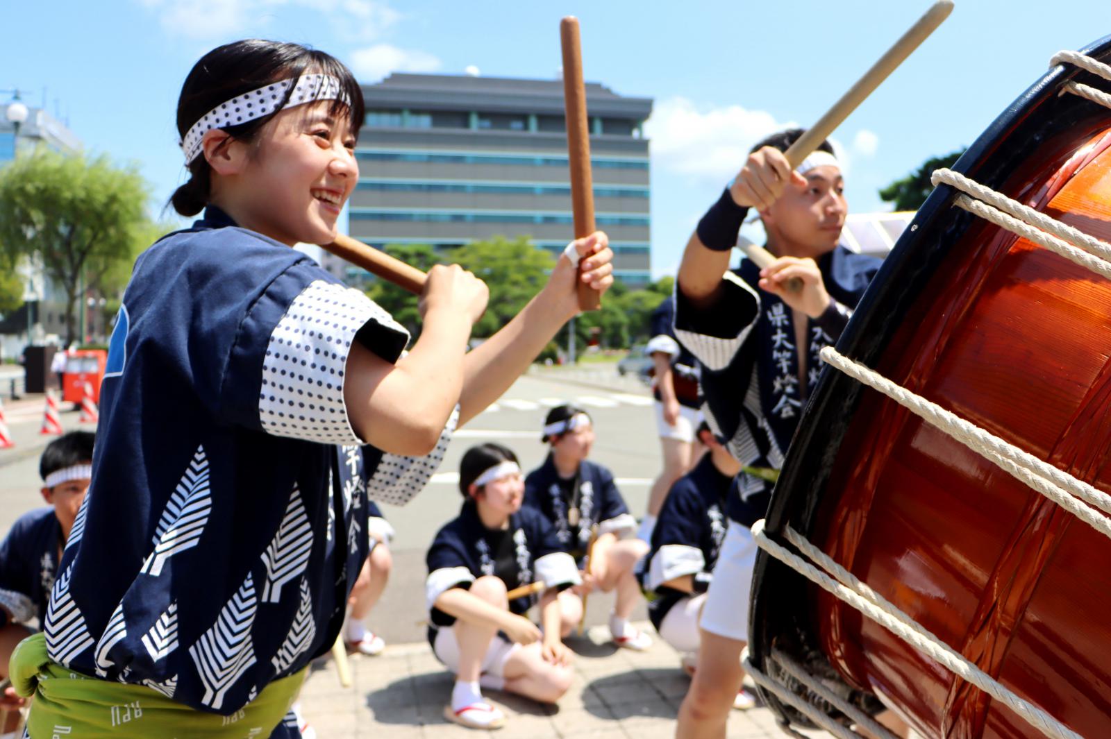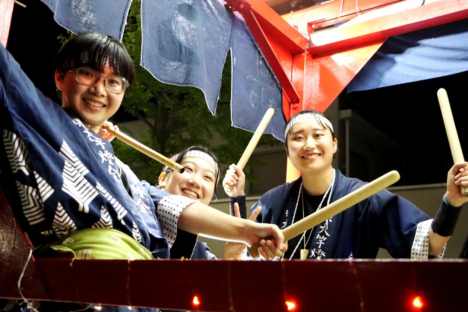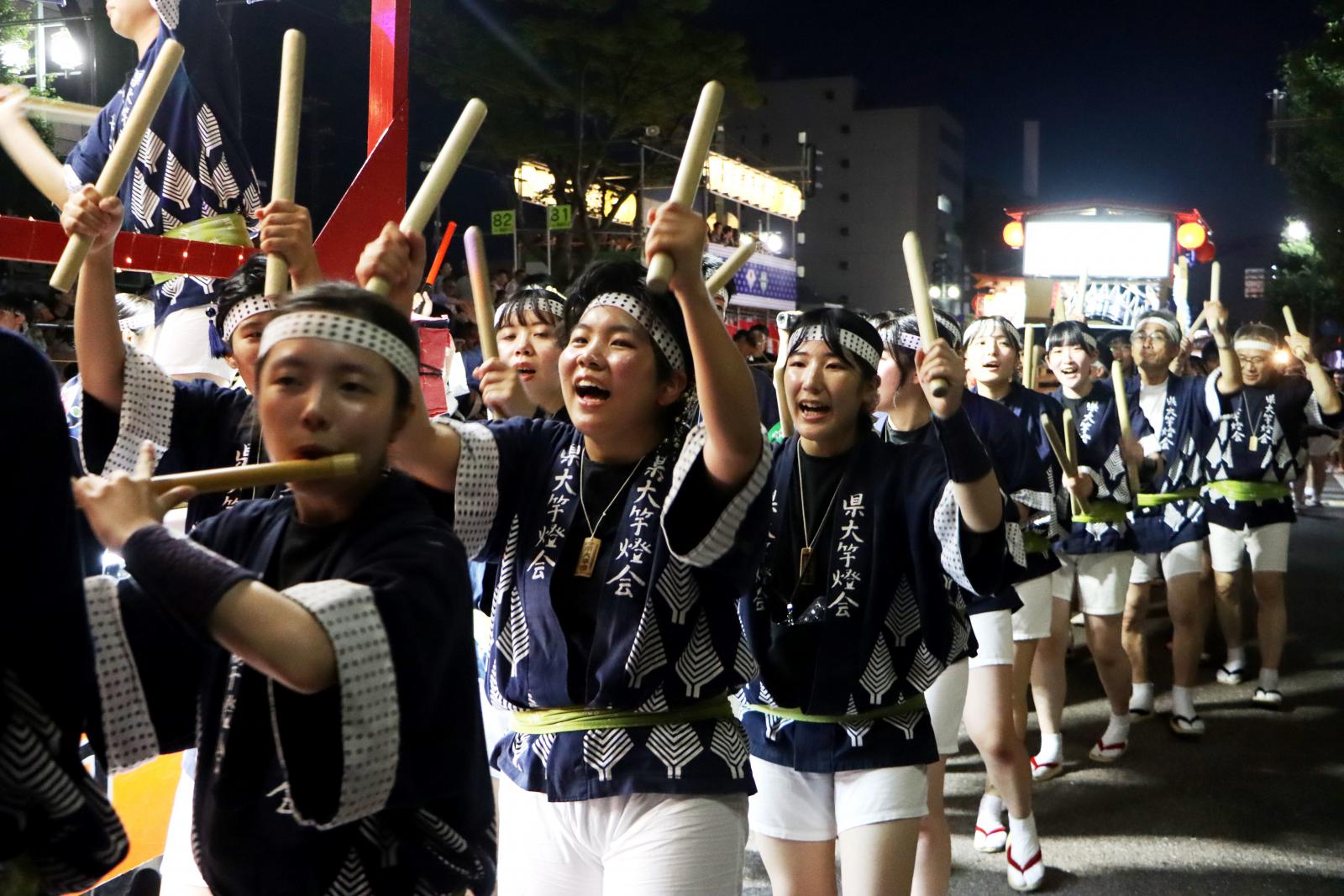 5日、秋田市のエリアなかいちで開催された妙技会の予選では、本学は大若囃子方、大若個人で予選を通過。6日に行われた決勝でも積み重ねた練習の成果を存分に発揮し、大若囃子方が第4位、大若個人の大久保武矢さんが第7位に入賞しました。また、本学卒業生で組織する秋田県立大学燈和会の米谷俊司さん(生物環境科学科卒、生物資源科学研究科修了)が堂々の第3位、高橋一成さん(応用生物科学科卒、生物資源科学研究科修了)が第6位に入賞しました。