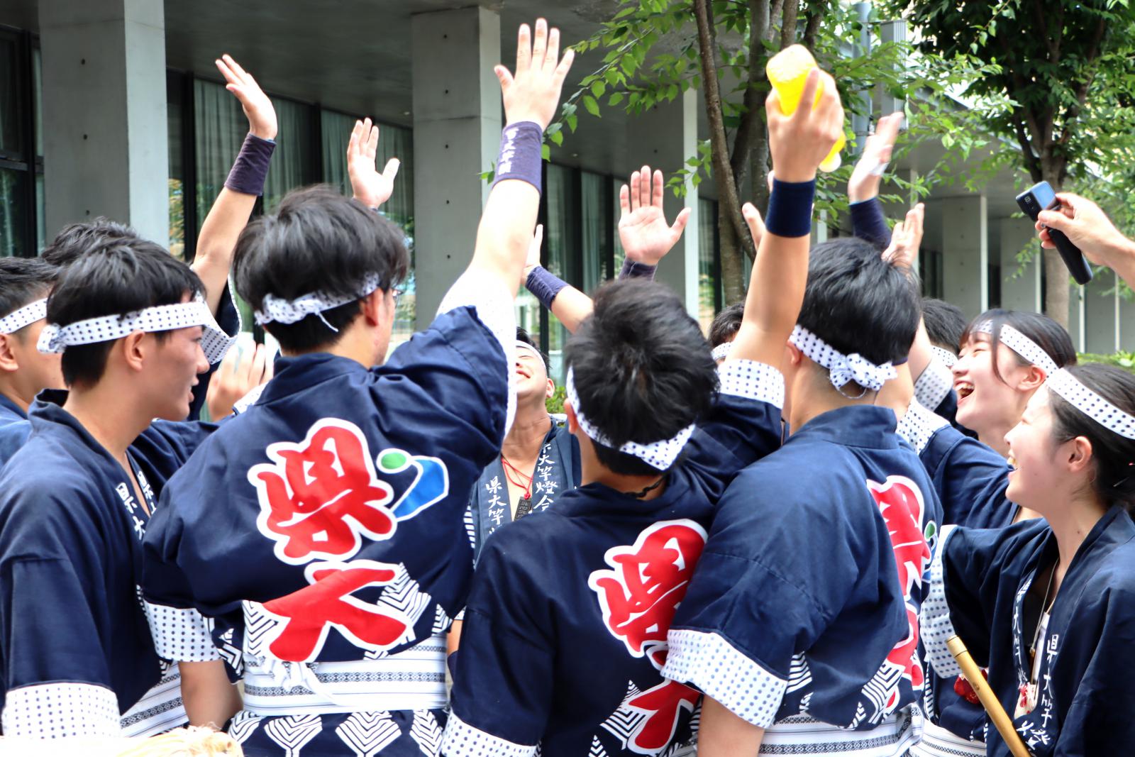 今年は、竿燈祭り期間中の4日間とも天気に恵まれ、竿燈大通りは美しい光の稲穂で飾られました。夜竿燈では熱のこもった熱い演技を披露し、県内外から集まった多くの観客を魅了しました。また、アゴラ広場や秋田県庁前での合同での出竿でも、たくさんのお客様から温かいご声援をいただき、大変励みになりました。今後も、秋田県立大学竿燈会へのご支援のほどよろしくお願いいたします。