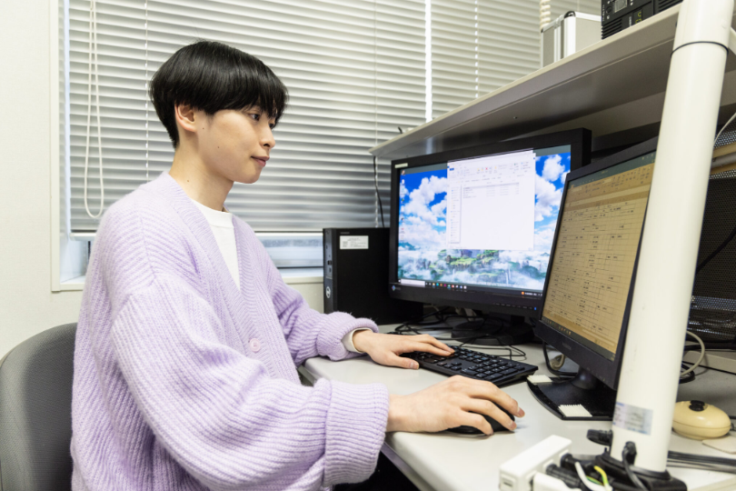 在学中、研究に取り組む田村さん(令和4年2月撮影)