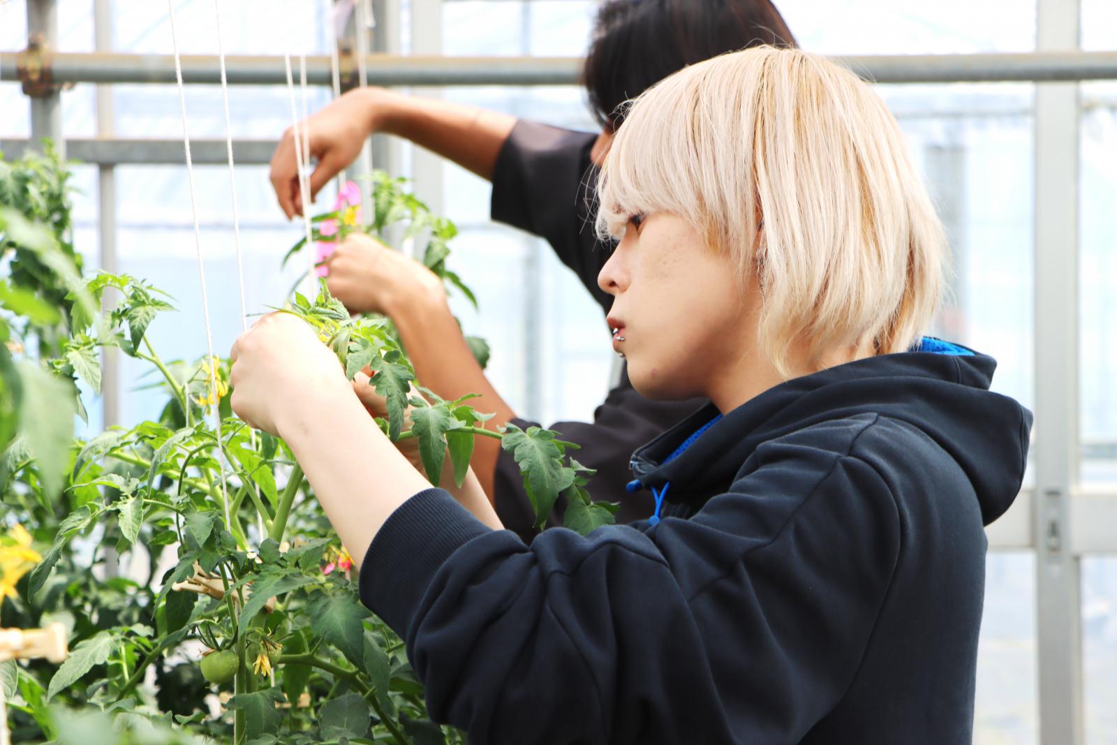 生物資源科学部生物生産科学科2年次では、約10種類の作物を播種から収穫までを学生自身が行い生産から消費までの一連の過程を学ぶ、生物生産科学実習が行われています。