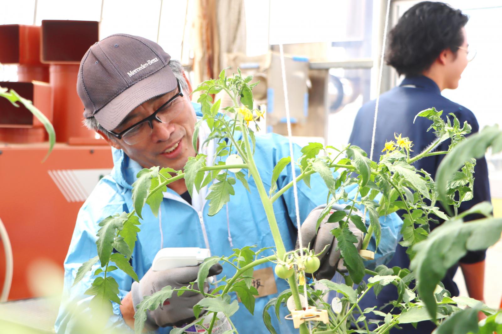 5月に入学したシニア大学生・二期生15人のうち8人が実習に参加しており、この日はトマトやジャガイモなどの栽培管理に取り組みました。