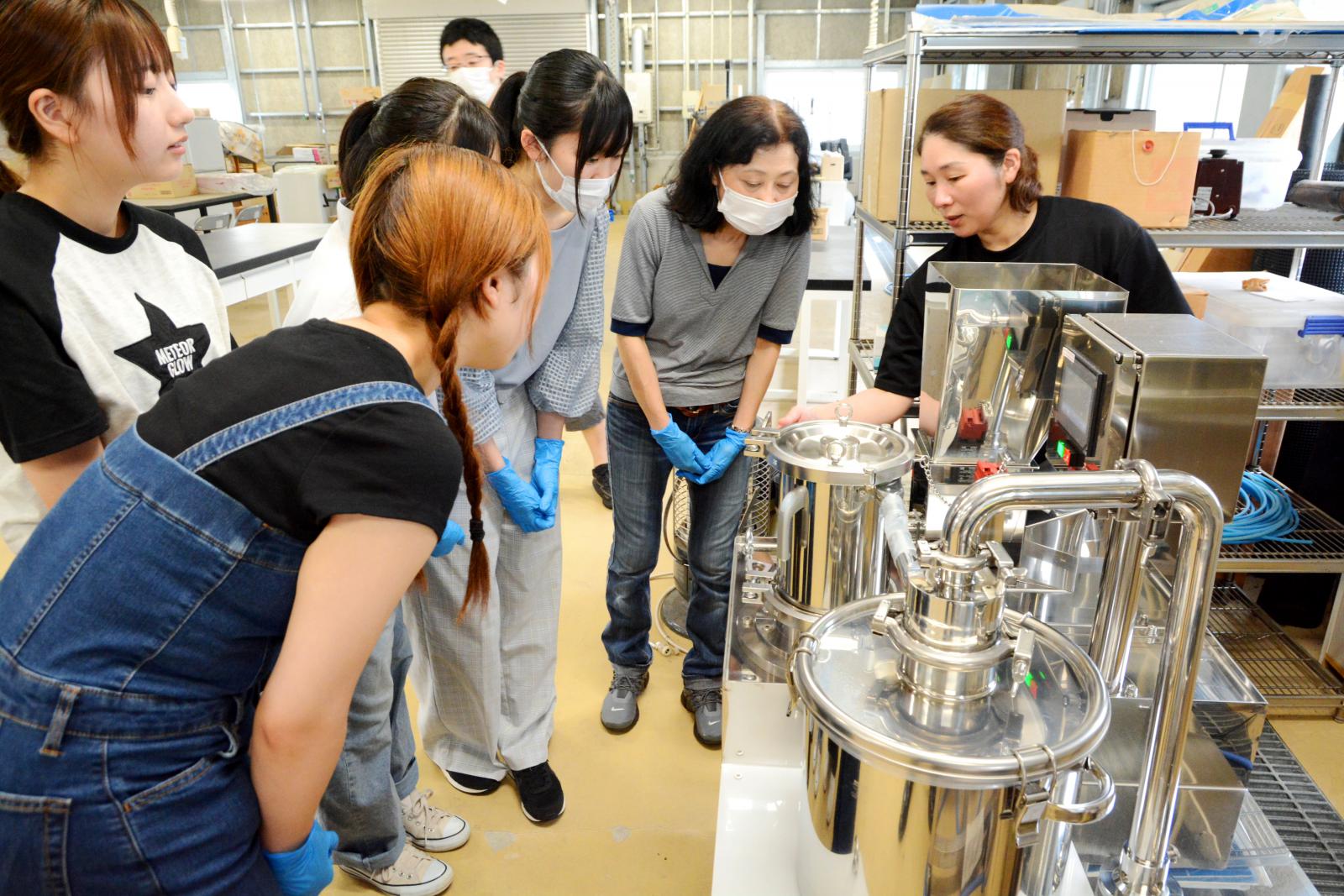 この日はグループのメンバー4人とともに、応用生物科学科/食品醸造グループの吉川雄樹 助教[専門:醸造微生物学]の指導のもと、米から作る米粉をつくる工程を体験しました。