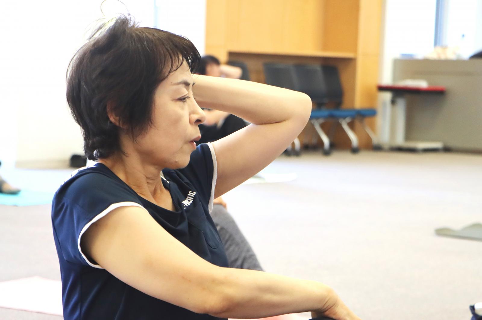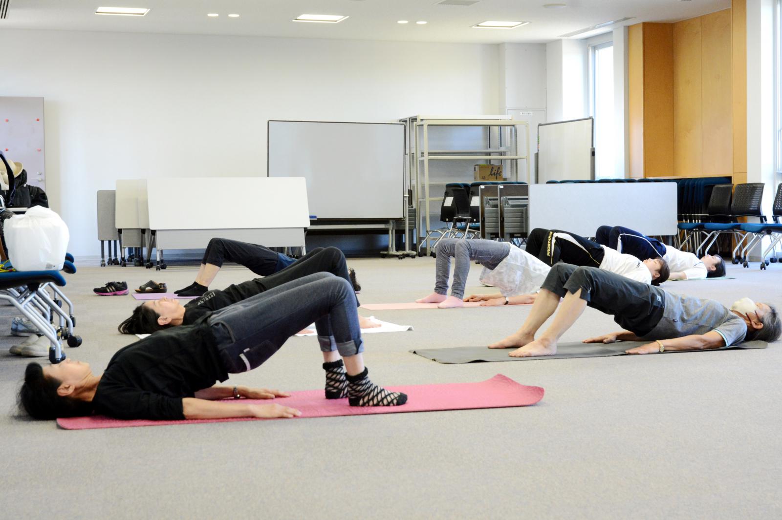 日常生活では動かす機会の少ない筋肉を存分に使い、少し難しい動きもありましたが1時間半のレッスンで肩が軽くなったり、回しやすくなったりとビフォーアフターを実感され、笑顔が溢れていました。12月には、キャリア開発講座「リラクゼーション ボディワーク」と題した、学部生向けの授業が予定しており、シニア大学生も参加する予定です!