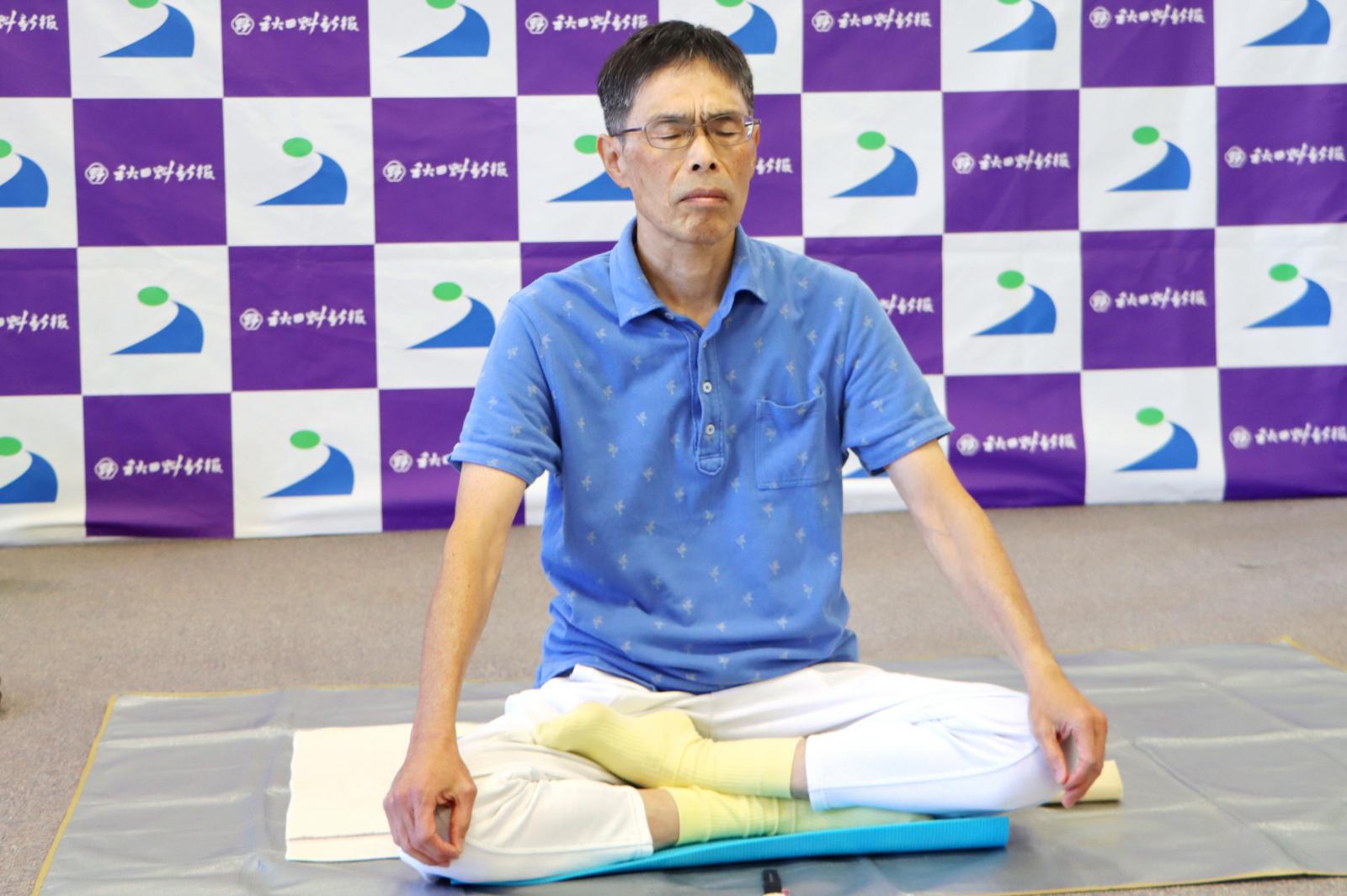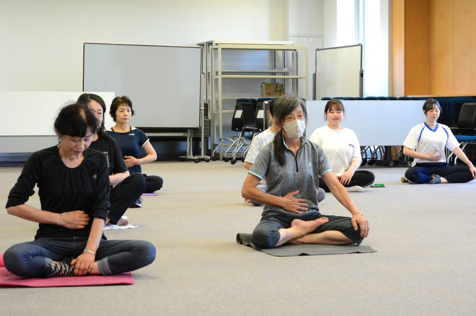 【いつでも青春キャンパス】シニア大学生、精神統一 中沢学部長・教授によるヨガ教室