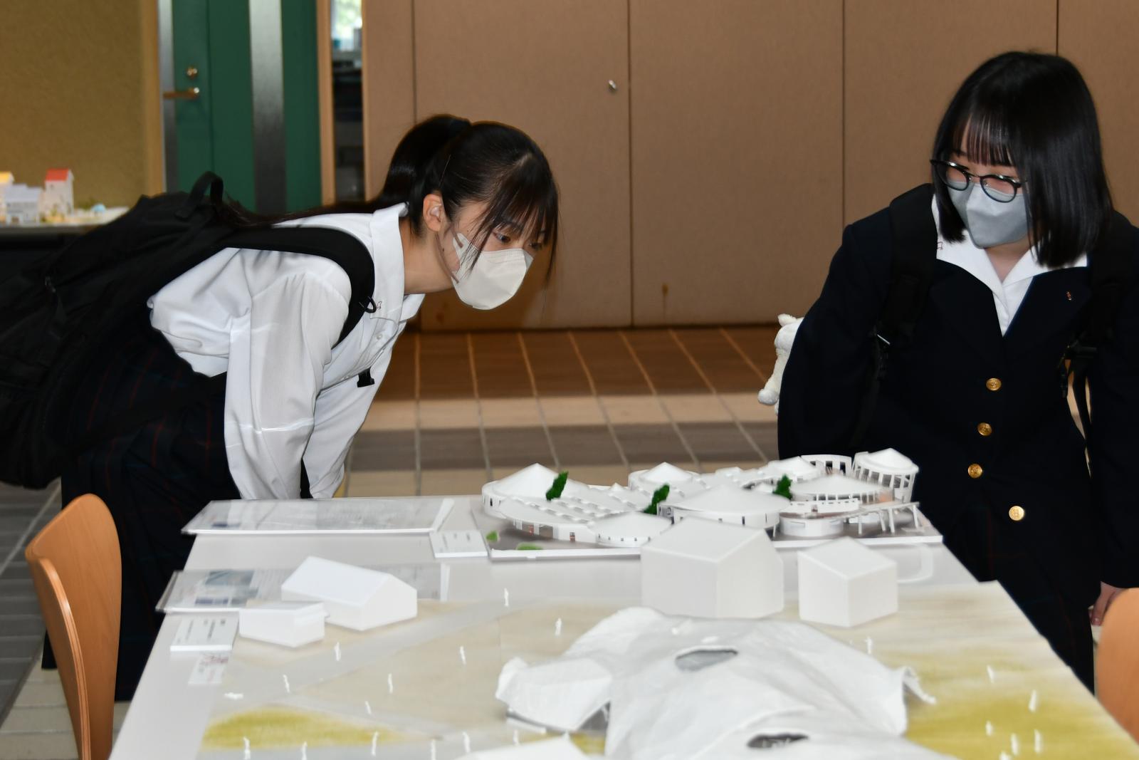 講義の後は施設見学を行い、図書館や創造工房、学部棟の展示物など本荘キャンパスの特徴的な施設を見て回りました。大学ならではの設備や広々としたキャンパスに皆さん興味津々でした。