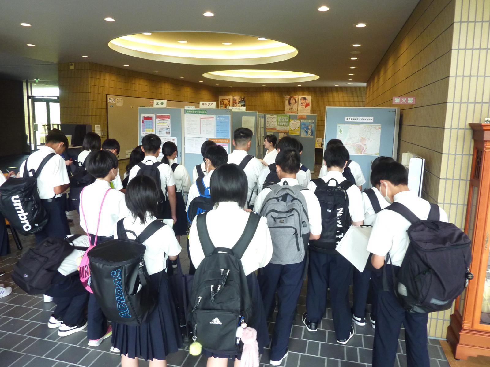 9月18日(水)、秋田県立横手清陵学院中学校2年生の皆さんが、進路学習の一環として本荘キャンパス見学に訪れました。概要を説明後、1時間半ほどかけて、実際にキャンパス内を見学しました。