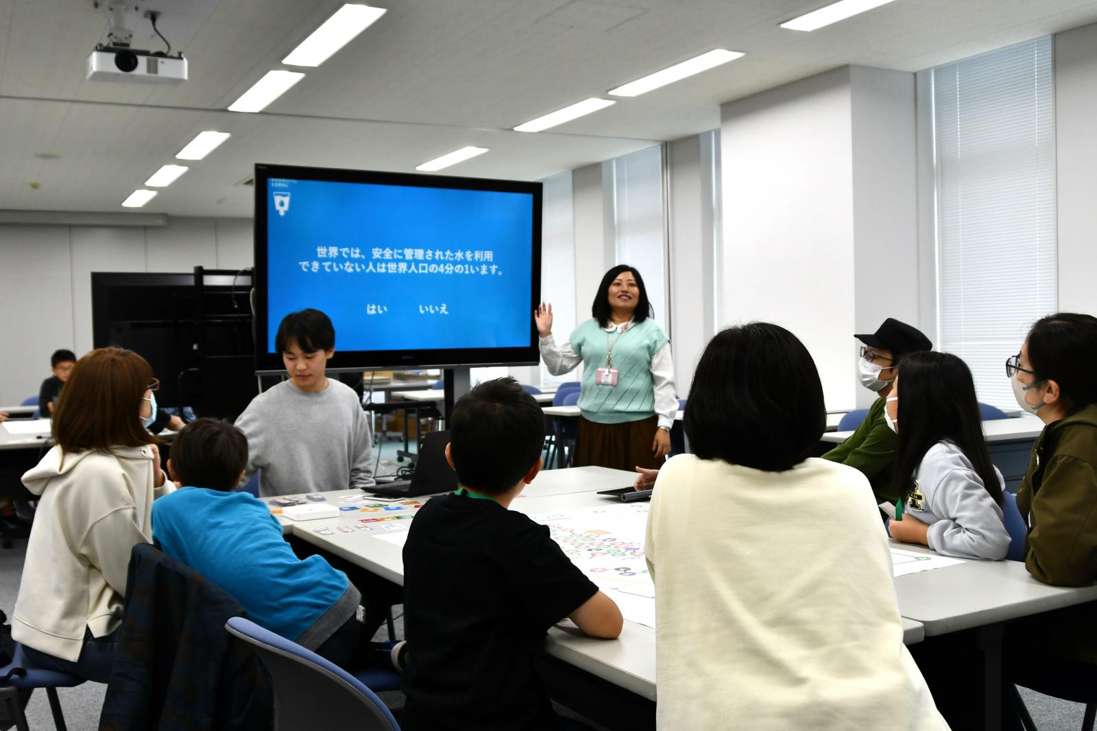 2チームに分かれ、チームのメンバーと協力しながら、国連の掲げる持続可能な開発目標に関する様々なクイズに答えて、コマをすすめていました。