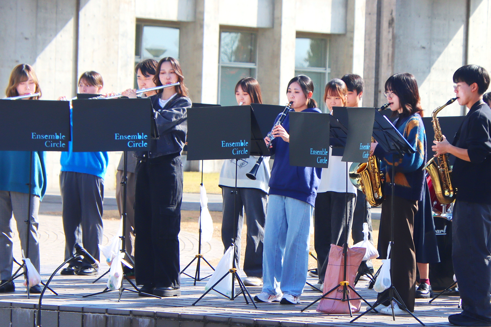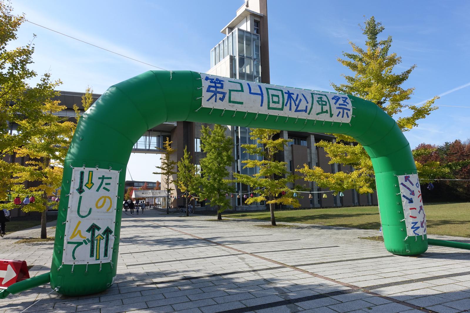 10月26日(土)、27日(日)の2日間にわたり、秋田キャンパスを会場に生物資源科学部大学祭『松風祭』を開催しました。松風祭実行委員会が中心となり準備をすすめ、両日とも晴天に恵まれ、地域の方々や本学関係者など2,000人以上の来場者を迎えました。今年の松風祭のテーマは「火樹銀花」です。このテーマは、「街の灯りや花火の光が輝く様子」を表しており、明るい日常が少しずつ戻り、今年はさらに学生が主体となった学園祭にしたいという意味が込められています。当日はテーマのごとく、キャンパスが笑顔で溢れ、陽光にも照らされキラキラと輝やく情景が広がりました。