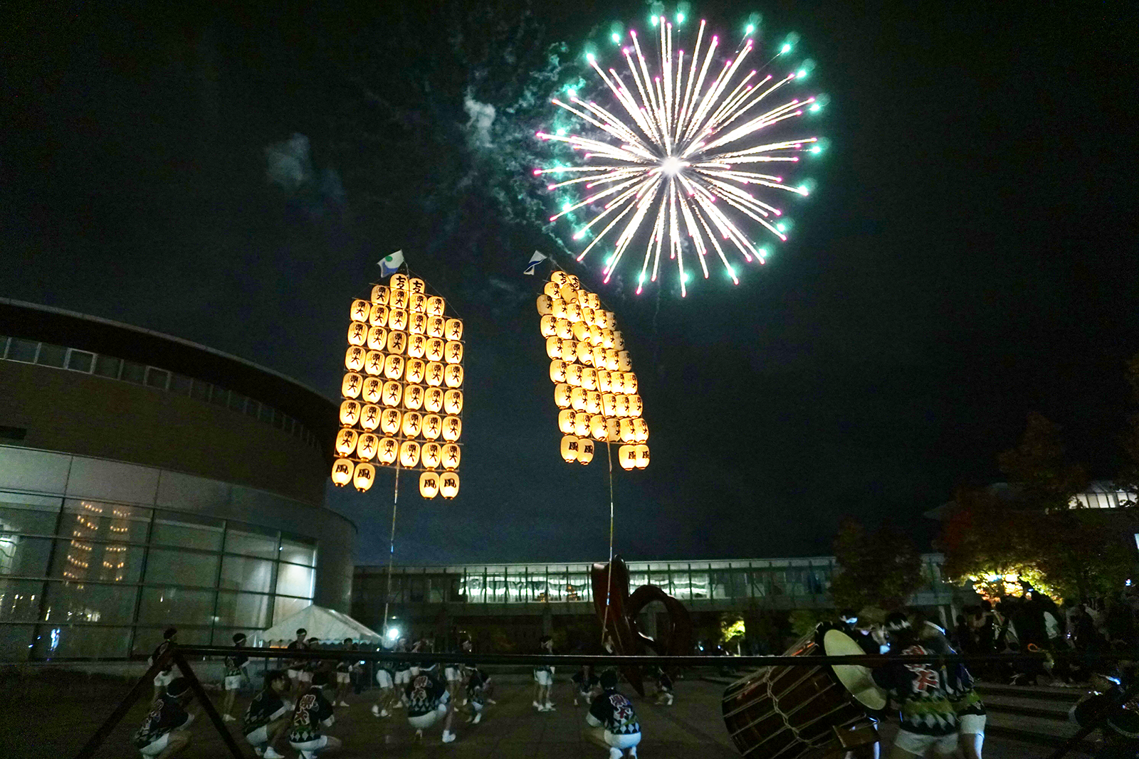 研究棟では、各学科の研究室ごとにブースを出展し、研究内容を交えた体験型企画が行われました。各サークル・有志団体や青春キャンパスシニア学生による模擬店では、長蛇の列ができるほどの賑わいを見せました。夜には竿燈会による演技と花火のコラボレーション企画が披露され、大盛況のうちに松風祭を終了することができました。