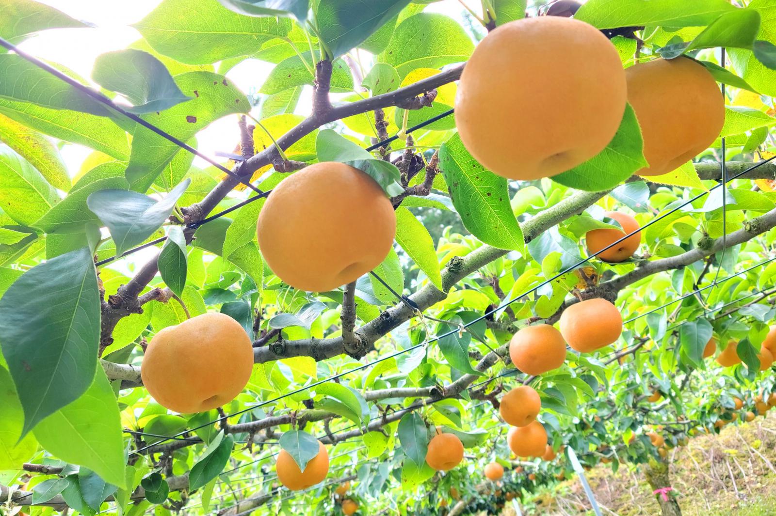 高橋さん夫婦は現在、園地2㌶で「幸水」「秋泉」「南水」など6品種を手掛けています。愛情を注いで育てた今年のナシは、果汁が豊富で瑞々しく、甘さと酸味のバランスも絶妙で、一口食べるとシャリシャリとした歯切れのよい食感が口いっぱいに広がり、高橋さんの自信作に仕上がりました。なお、繁忙期には県大生もアルバイトで梨の栽培に携わり、栽培技術の指導はもちろん学生生活や進路上のアドバイスを行うなど、後輩たちの良い手本にもなっています。