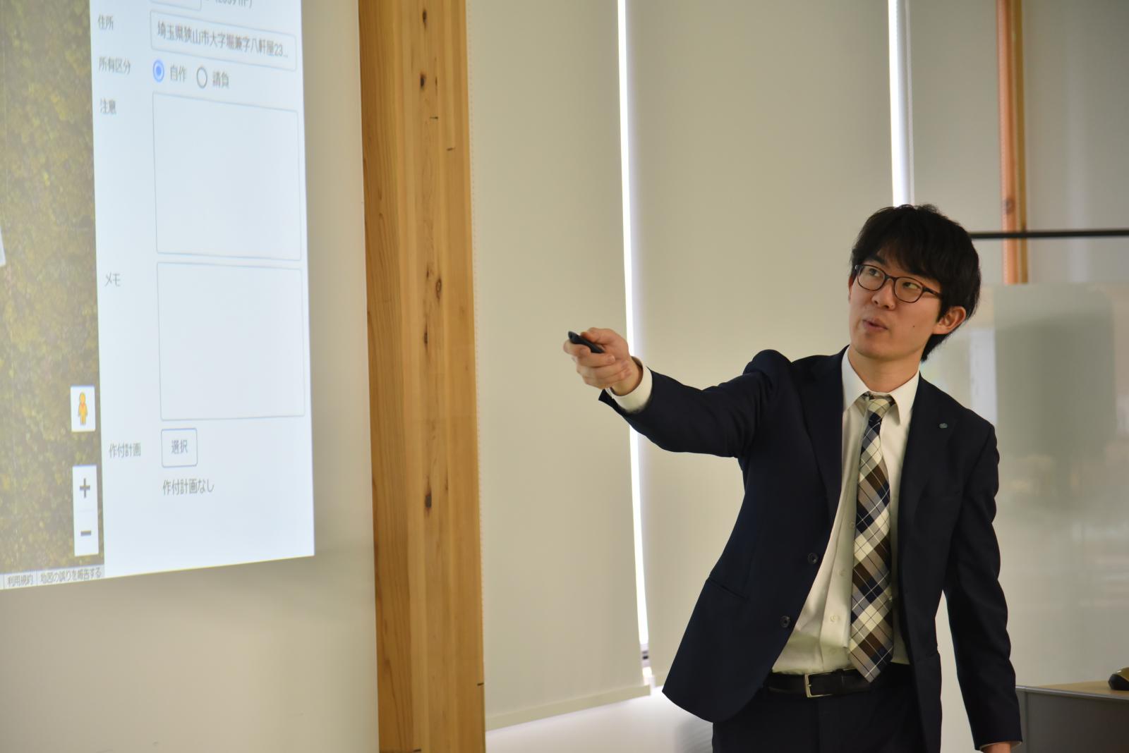 本演習では、(株)クボタから講師をお招きし、KSAS(クボタが開発した圃場管理システム。圃場・作物・作業者・資材など、農業生産に関わる情報をクラウドで管理できるシステム)について講義と演習を行いました。