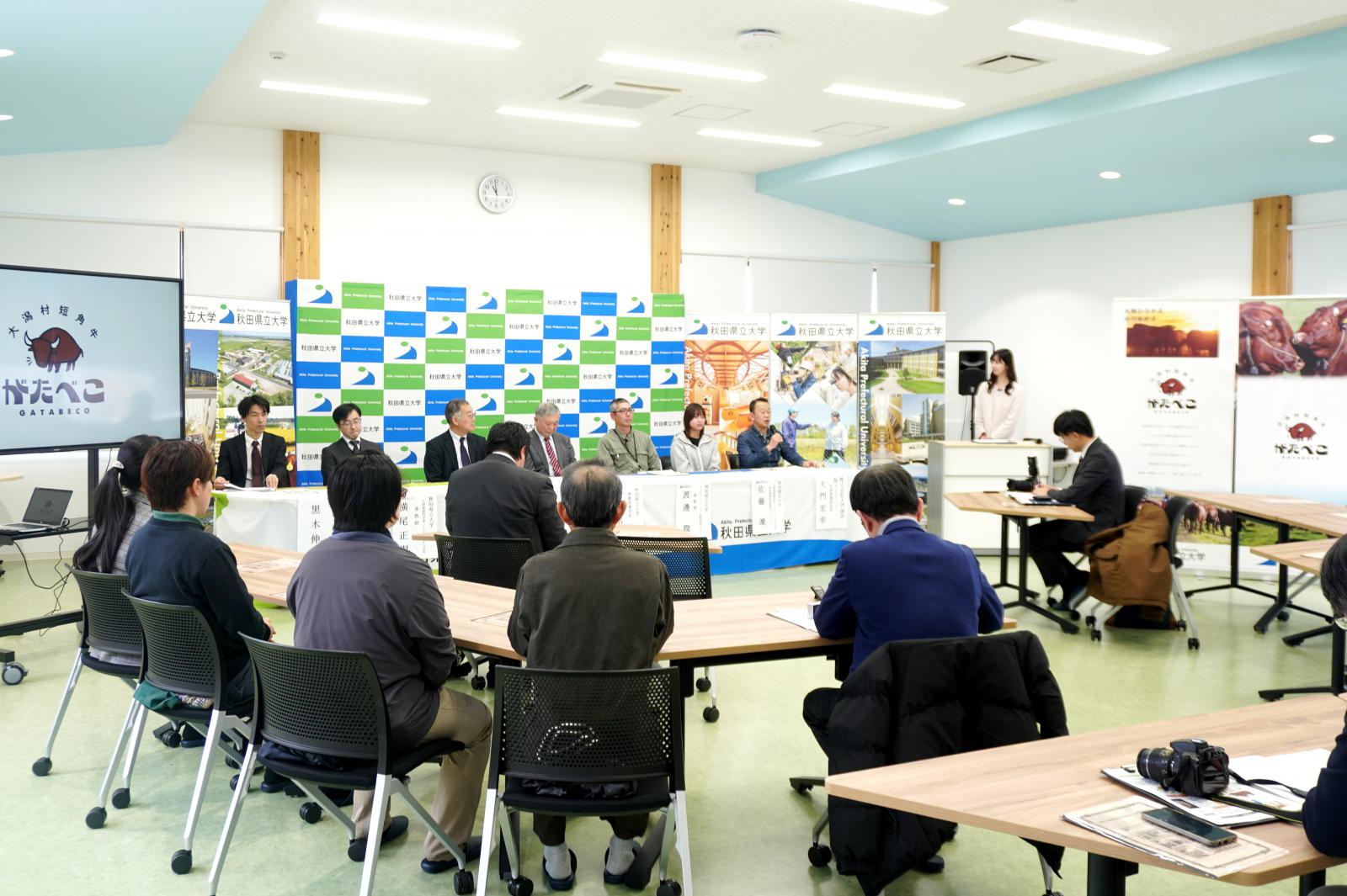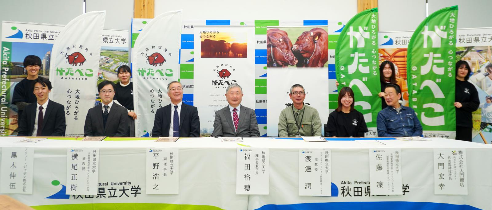 生物資源科学部アグリビジネス学科/家畜資源利用推進プロジェクトは、日本短角種(短角牛)の資源循環型飼養技術を確立、品質の良い肉牛の安定生産体制が確保されたことにより、12月12日(木)、新しいブランド名『がたべこ® 』を発表しました。