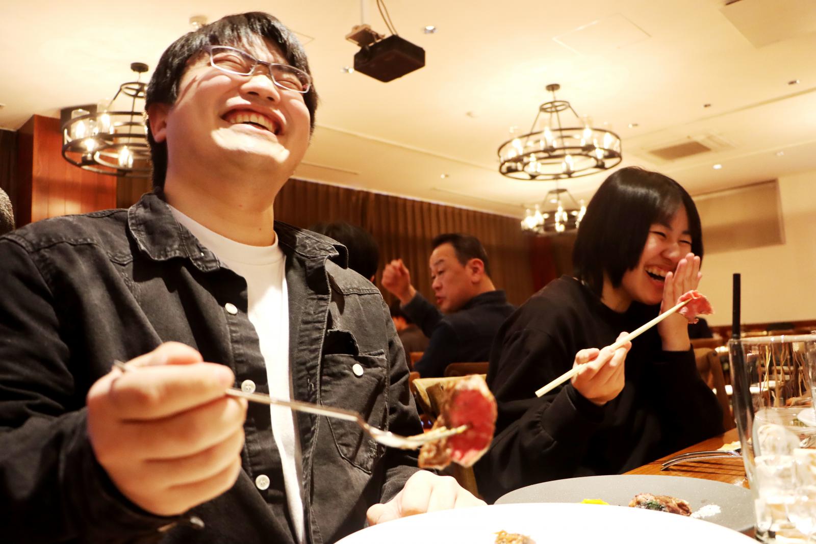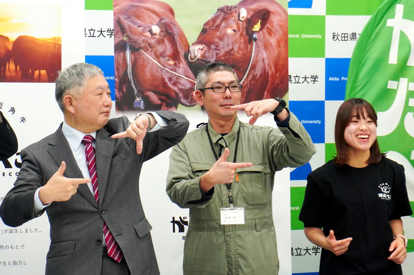 同プロジェクトアの佐藤凜さんは、「秋田県立大学で育った牛は最高に幸せと断言できます。牛だけに愛情がギューっと詰まった、最高品質のお肉ができました。特に、ローストビーフとサイコロステーキは絶品です。ブランド名が全国に広がり家族みんなで食卓を囲めるようなお肉になってほしい。これからも愛情たっぷりに育てます!」
