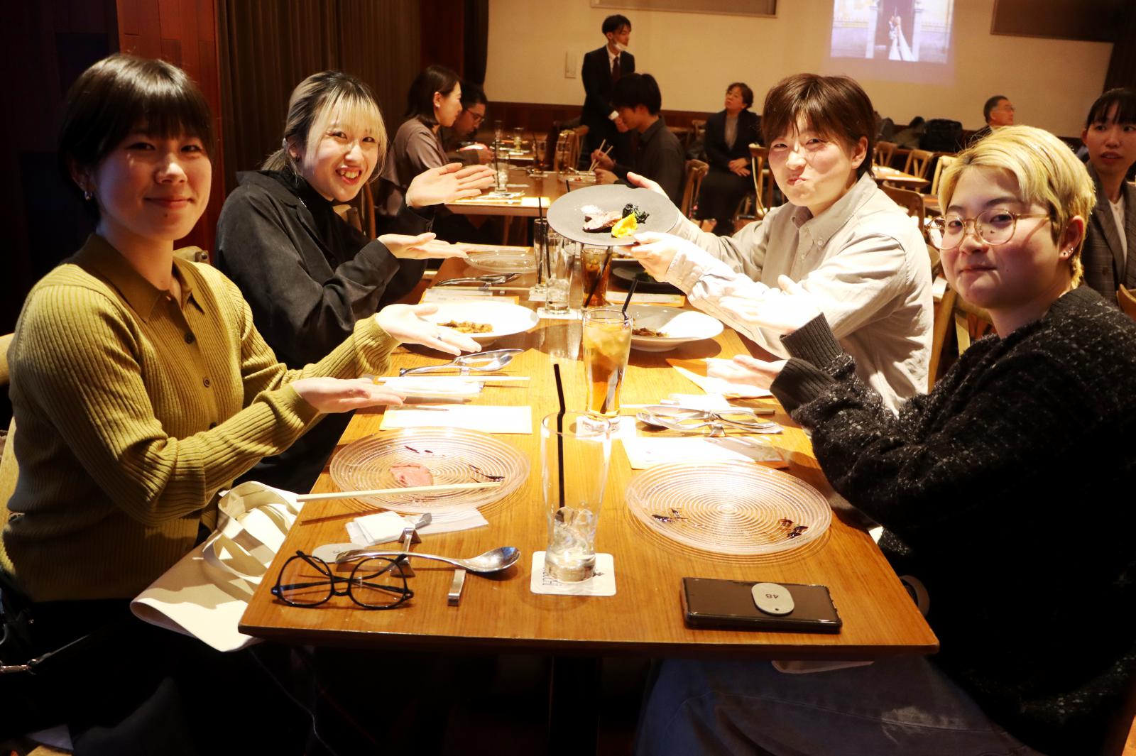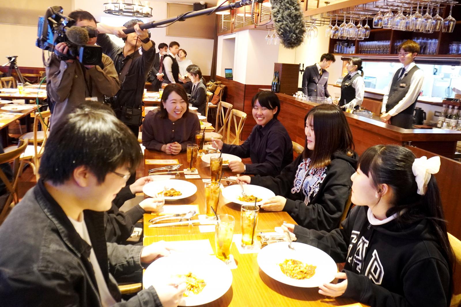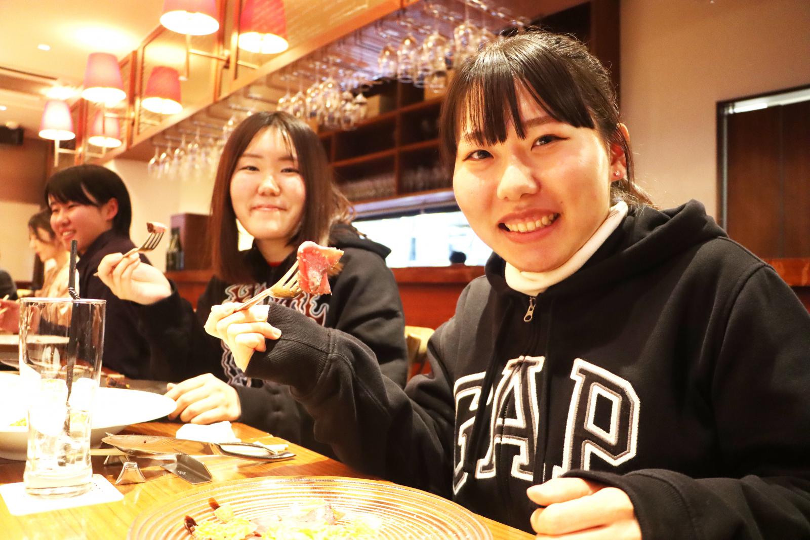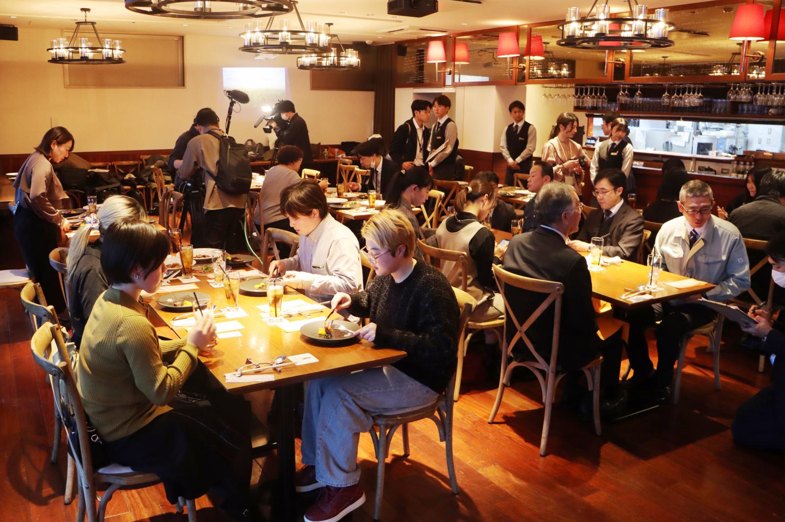 秋田市のオステリア ムーリベッキで試食会を開催しました。プロジェクトの教員・学生、卒業生らが参加し、『がたべこ® 』を使用したローストビーフなど3品を堪能しました。参加者からは、「噛むほどに美味しさが溢れていくらでも食べられそう」「肉が柔らかく脂がさっぱりしている」「赤身肉の旨みがしっかりしているだけでなく、脂も美味しく噛めば噛むほど旨みがでる」などの感想が聞かれました。