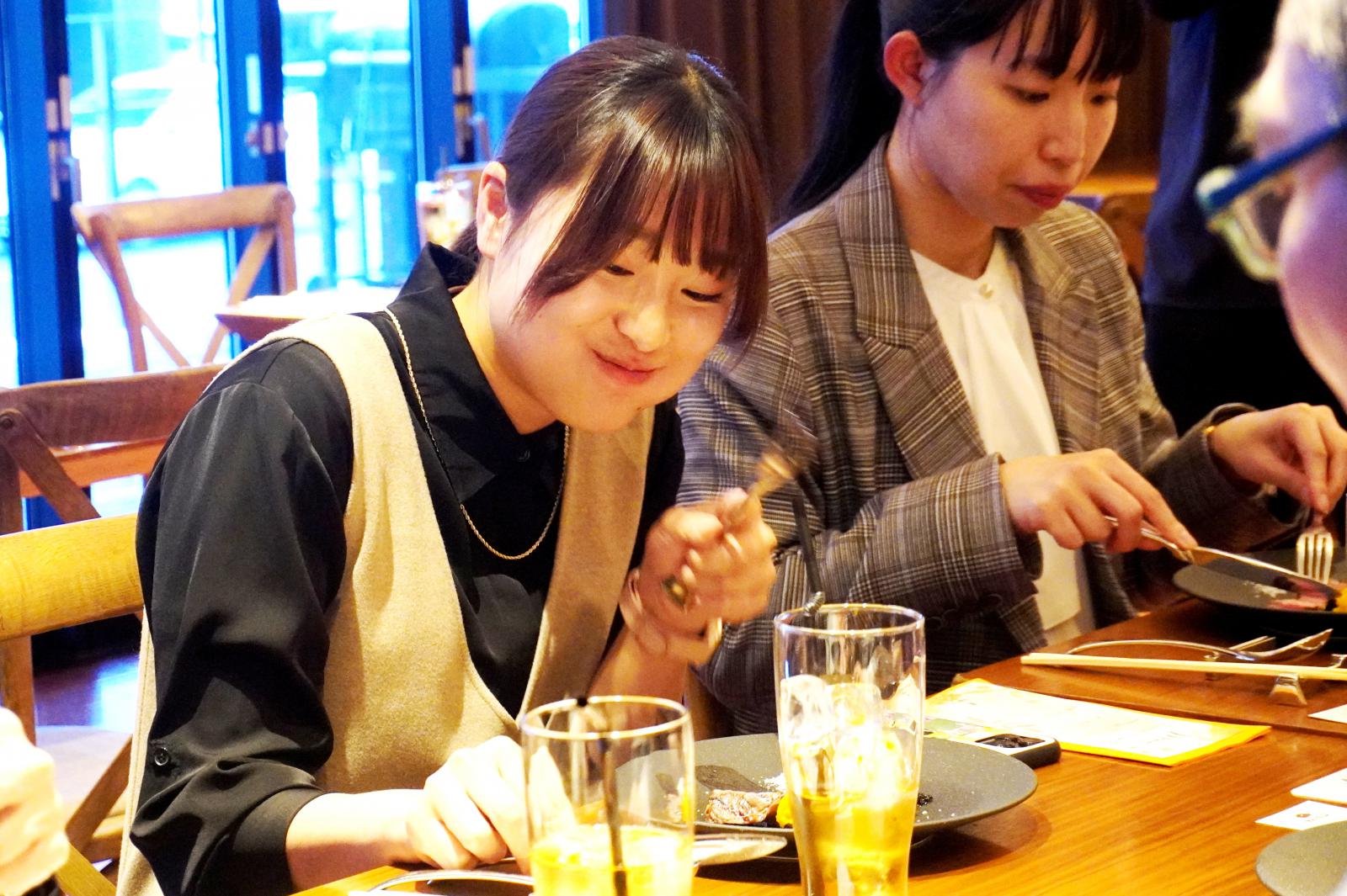 令和3年度にアグリビジネス学科を卒業された益子佳緒里さんは、在学中の令和3年1月に牛舎火災を経験しました。卒業後、秋田市の「寿牧場」に就職し、秋田県産黒毛和牛ブランド「秋田牛」の品質を競う秋田牛枝肉共励会で、最高賞・チャンピオン賞を受賞するなど活躍しています。益子さんは、「牛舎火災が発生した時は、現実を受け止めることができず、やりきれない気持ちでした。後輩たちがしっかり復興してくれて、美味しいお肉になったことが本当に嬉しい。」とお話しくださいました。なお、今回の試食会で提供した肉は、牛舎火災で生き延びた牛のお腹にいた牛です。