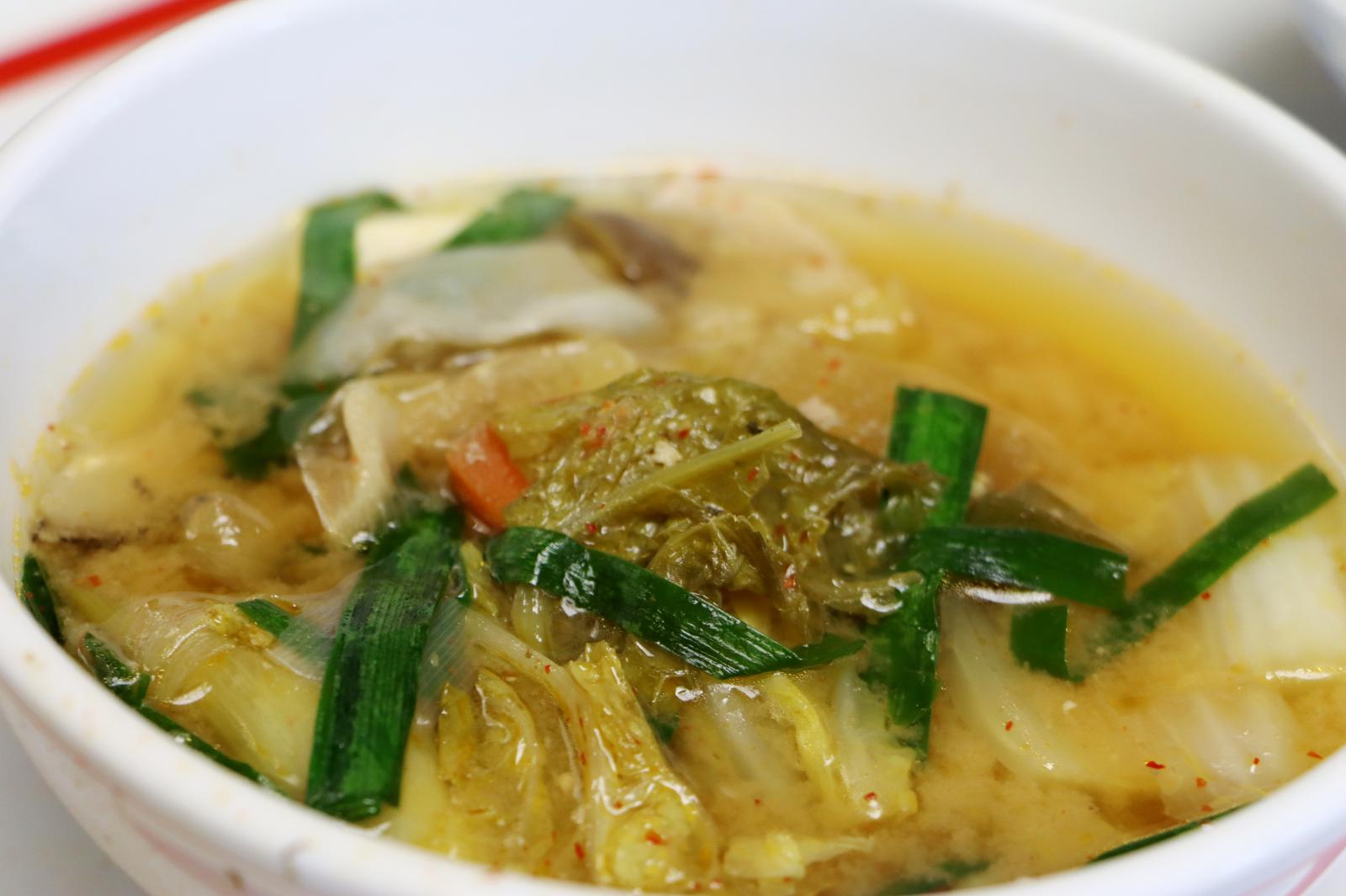 自家製みそ仕立てのキムチ鍋にドレッシングをトッピング