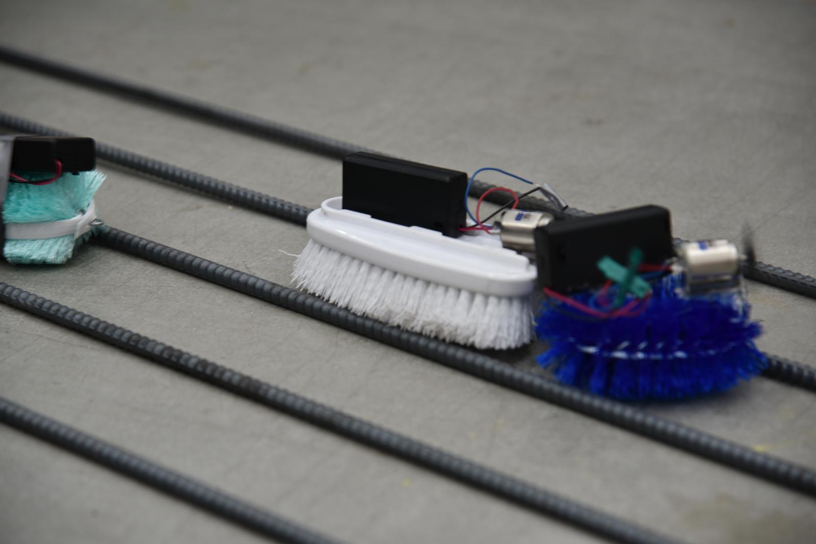 最初に、様々な形のたわしやブラシの中からマシンの土台となる材料を選びました。