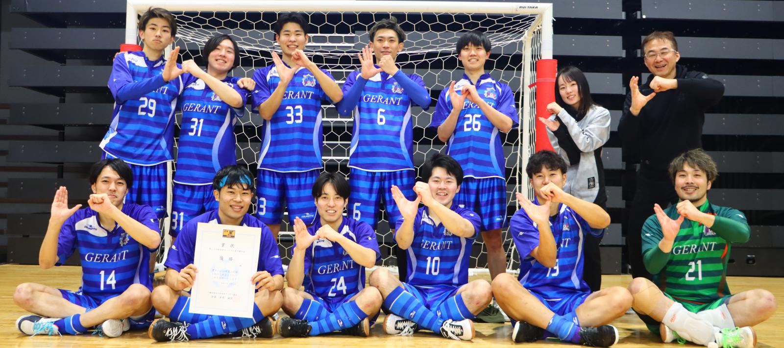 夏の「全日本大学フットサル選手権大会東北大会」に続き二つ目の全国大会予選、「全日本フットサル選手権大会東北大会」に出場しました。この大会は、社会人も参加する一般の大会となります。全国大会に進むとフットサルのプロリーグであるFリーグのチームと対戦し、フットサルの日本一を決める大会です。私たちはこの東北大会で勝利をあげたことがなく、難しい大会であります。初戦は、東北2部に所属する福島県代表チーム。私たちは東北フットサルリーグ1部所属のチームのためシードされ、形の上では挑戦を受ける立場。自分たちは大会未勝利でありながらも格上でもあるという複雑な試合。試合は幸先よく先制するも、エース阿部秀哉(共同サステナブル専攻2年)を退場で欠くというアクシデントから同点に追いつかれ、ネガティブな雰囲気に支配されてもおかしくないところ。しかし、選手たちからはリードしていた時よりも大きな声、ポジティブな声が溢れていました。夏の大会の敗戦から人間性が大きく成長したと感じ、嬉しく、そして頼もしかったです。本来であれば追いついた相手チームの勢いが増すところですが、逆に2点追加し、しっかり突き放した素晴らしい勝利で初戦を突破しました。今大会は、普段、学生を指導してくれている社会人メンバーとの合同チームGERANT(ジェラン)として参加。競技フットサルを続ける卒業生も数多く参加しました。そして2回戦。5人の学生GKを指導してくれている社会人GKが出場し、躍動。相手は、全国大会常連の「イタチカ八戸」。強豪相手に2−2で試合を終え、決着はPK戦へ。GKコーチの面目躍如、PKを2本止め、チームをベスト4に導いてくれました。4年生GKや院生は研究や学業などでコンディションが上がらず、試合で活躍できる状況になかったが、普段、ともに練習し指導してくれる社会人がいるおかげで戦力を維持し勝ち上がることができました。これは下級生にとっては大きなこと。選手層の薄い当大学は、本来であれば敗戦していた可能性が高いが、社会人との融合がスケールメリットとなり、下級生は貴重な経験を得た。後日談とはなりますが、その3年生が次世代エースとして、東北フットサルリーグでハットトリックを達成し、素晴らしい成長のきっかけとなる大会でした。あと一つ勝てば全国大会の準決勝の相手は「あしざるFC」。関東で結成された元プロ集団。その中には元フットサル日本代表も。全国大会に出場するために東北に乗り込んできたユーチューバーチームで資金力も豊富。結果は、前半を1−1で折り返すも後半0−1と勝ち越され、トータル1−2の敗戦。先制点を奪い、チャンスも多く作り、レベルが高い相手に堂々と渡り合いました。負けはしたものの、大会関係者や観戦者からは数多くの称賛を頂きました。東北大会3位。真摯に向き合ってきた練習、試合における気持ちの強さ、チームワーク…選手たちが積み上げてきたものは素晴らしい。全国に秋田県立大学の名を刻むまで、あと一歩でした。夢を現実にするために、選手たちとともに日々を大切に過ごしたい思います。みなさん、フットサルは観てて楽しいスポーツです。ぜひ、会場にお越しください。応援、よろしくお願いします!