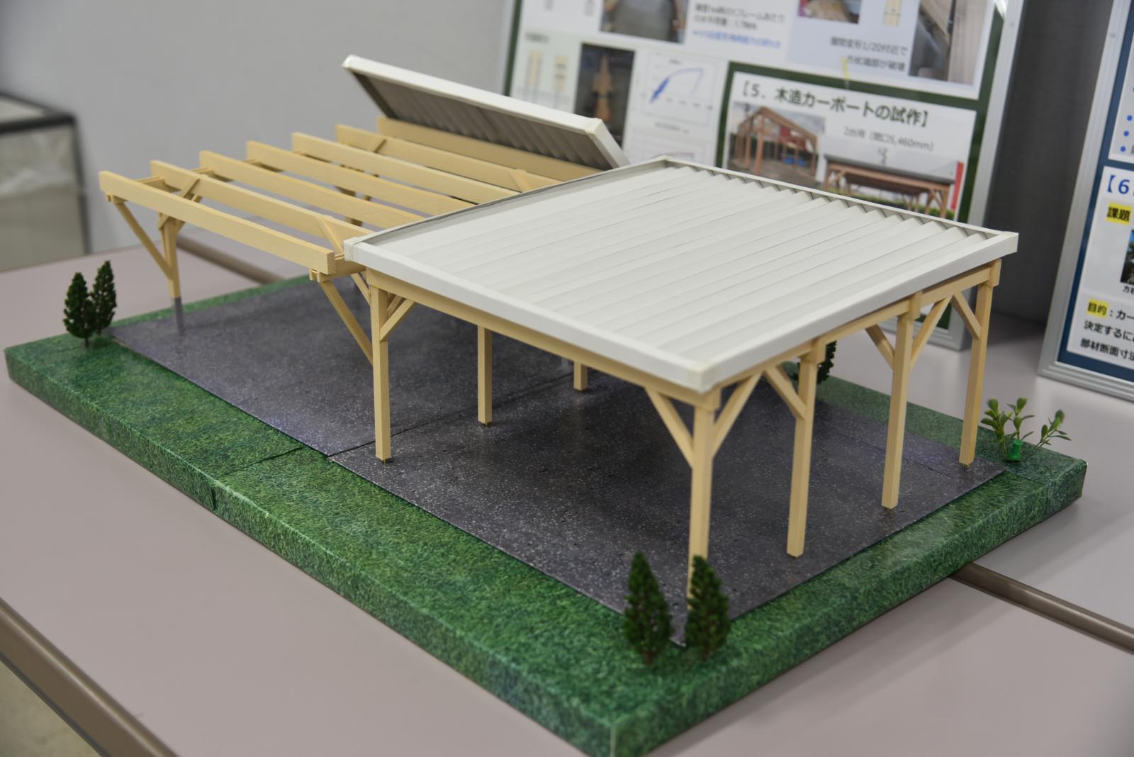 開発した木製カーポートの模型