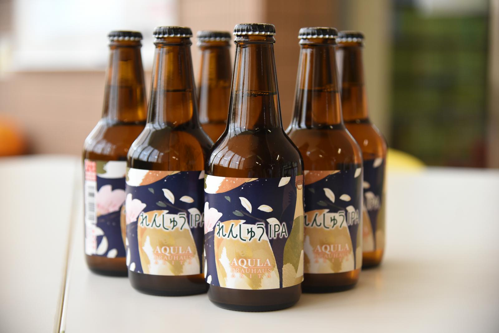「れんしゅうIPA」は、あきた吟醸ビールと同じく、秋田県立大学と秋田あくら麦酒が共同開発した、あきた吟醸麦酒酵母を使用して開発されたビールです。秋田県には「練習」という、乾杯前に一足先に飲む文化があります。「れんしゅうIPA」はあきた吟醸麦酒酵母など秋田らしい素材を使用しており、米の風味や吟醸香をしっかりと感じつつ飲み口は軽くクリアな「練習」ぴったりなビールです。