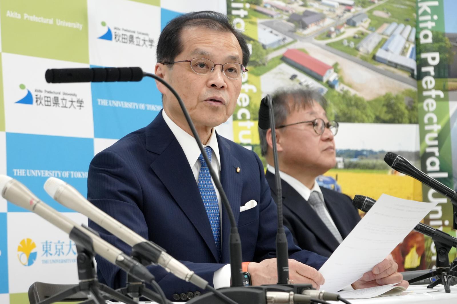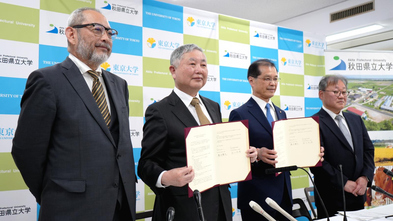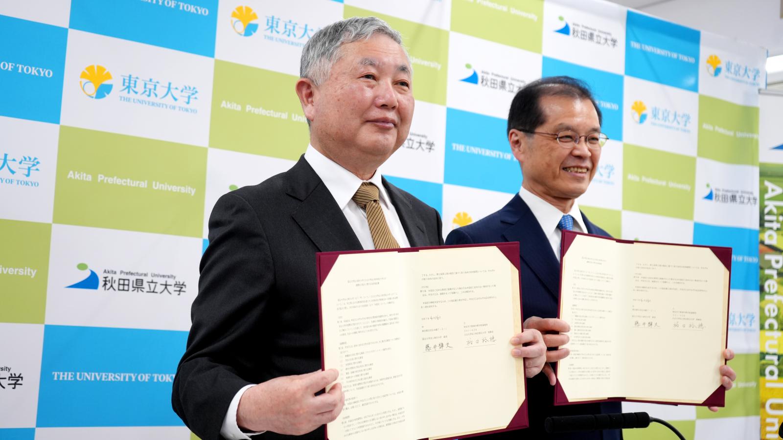 令和7年4月14日、秋田県立大学(学長:福田裕穂)は東京大学(総長:藤井輝夫)と「連携及び協力に関する包括協定」を締結しました。