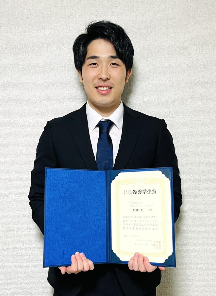 知能メカトロニクスコースの村井太一さんが2024年度電気学会東北支部優秀学生賞を受賞しました