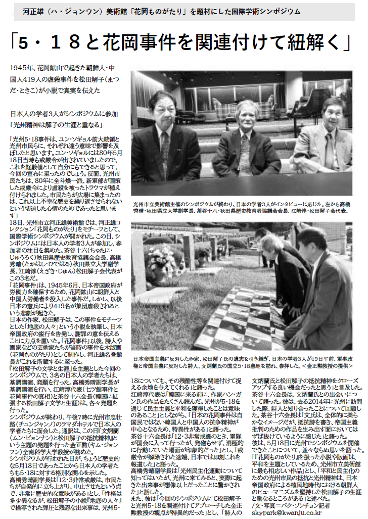5月20日付け光州日報 ※和訳に編集 クリックで拡大