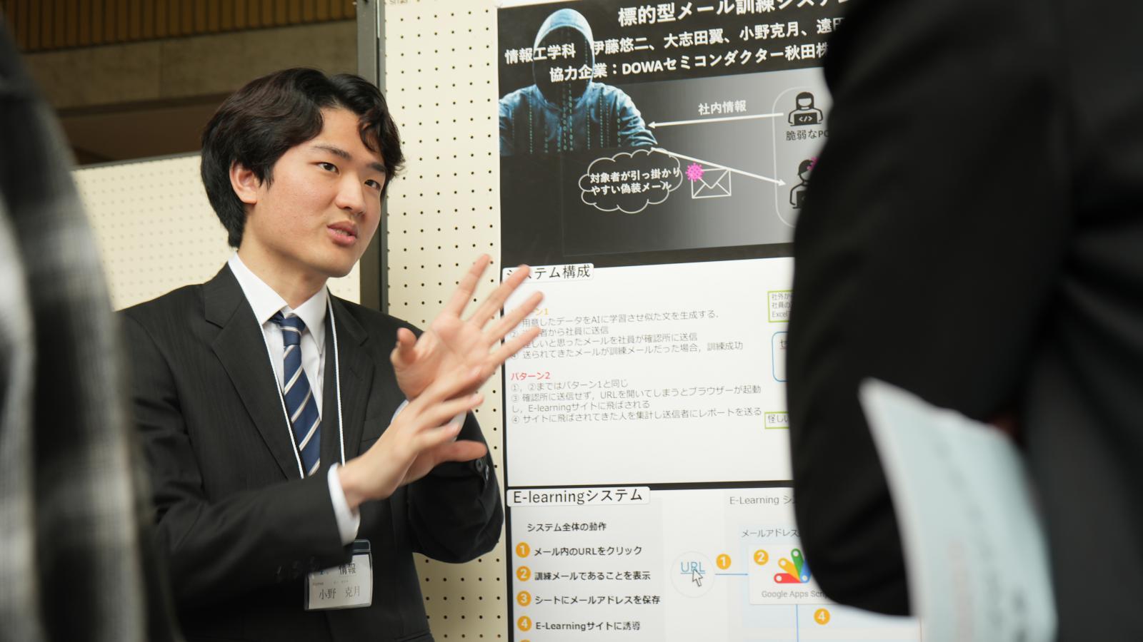 〇学生さんの課題に対する熱意、真摯な姿に感動しました。今回のテーマは、当社がまさに長年抱えていた課題で、忙しい日々の中でなかなか解決に向けて行動できなかったテーマです。対面とオンラインにより打合せを重ねるごとに、事象を理解し知識を吸収し、素早くシミュレーションする発想と、自分たちで考え実施していく行動力は素晴らしいと感心させられました。〇若手社員と一緒に試行錯誤しながらプロジェクトを進めました。だいたい成果が見えてきたあと、今日の最終発表会までの短い期間で、さらに改善提案を深めたのには驚きました。自分たちで考え実行していく行動力は素晴らしく、当社にとっても学ぶところの多い取り組みとなりました。本年度も、参加する予定ですので、さらに学生さんと連携を深めつつ、しっかり成果を出していきたいと思います。