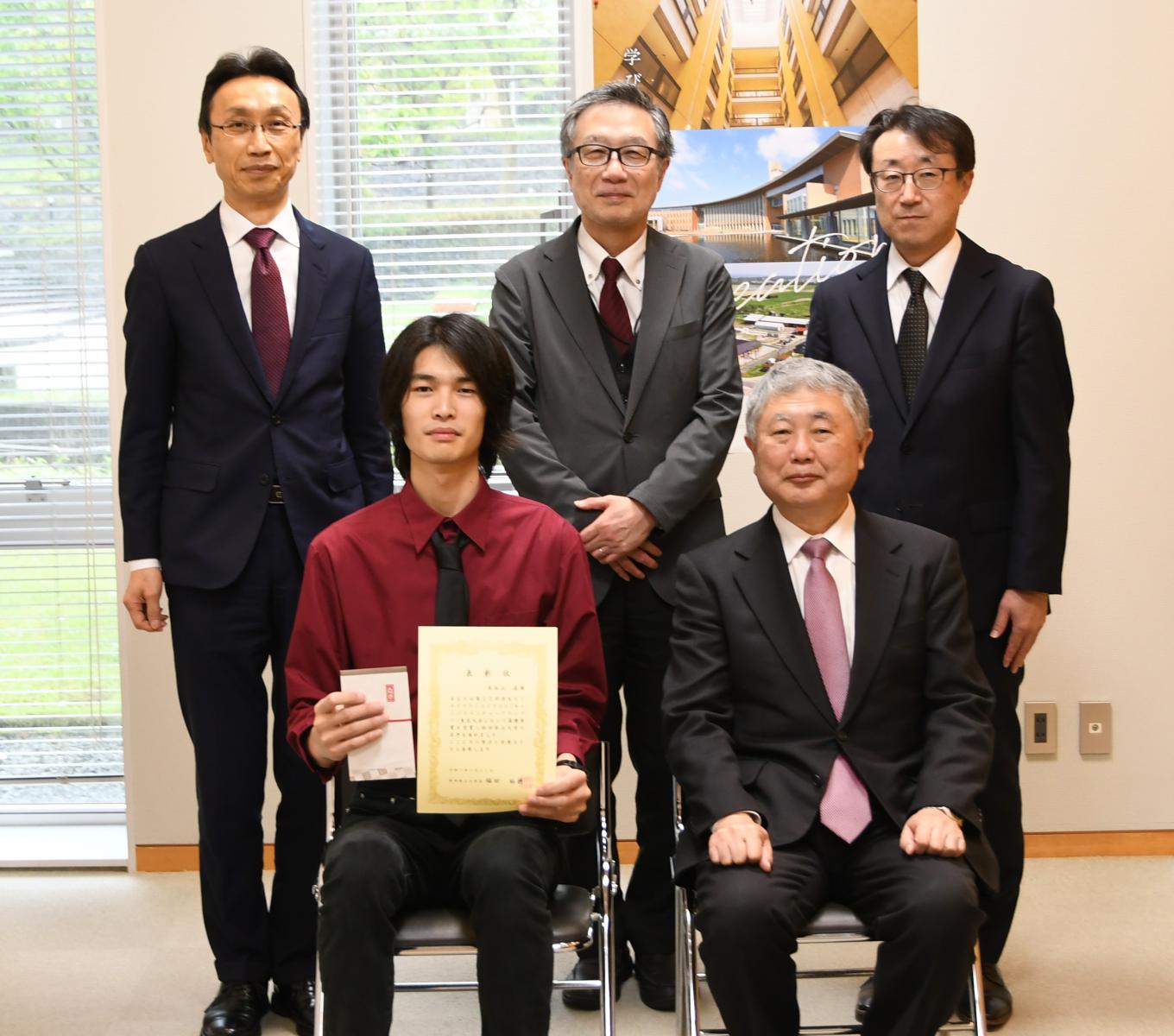 令和7年5月21日、本荘キャンパスにて学生表彰が行われました。第20回学生ビジネスプランコンテスト「キャンパスベンチャーグランプリ」東北大会(主催:日刊工業新聞社)において、知能メカトロニクス学科4年(受賞時は3年)・長谷山直飛(はせやま なおと)さんが最優秀賞を受賞されたこと、そして全国大会に東北代表として出場したことを称え、表彰が行われたものです。