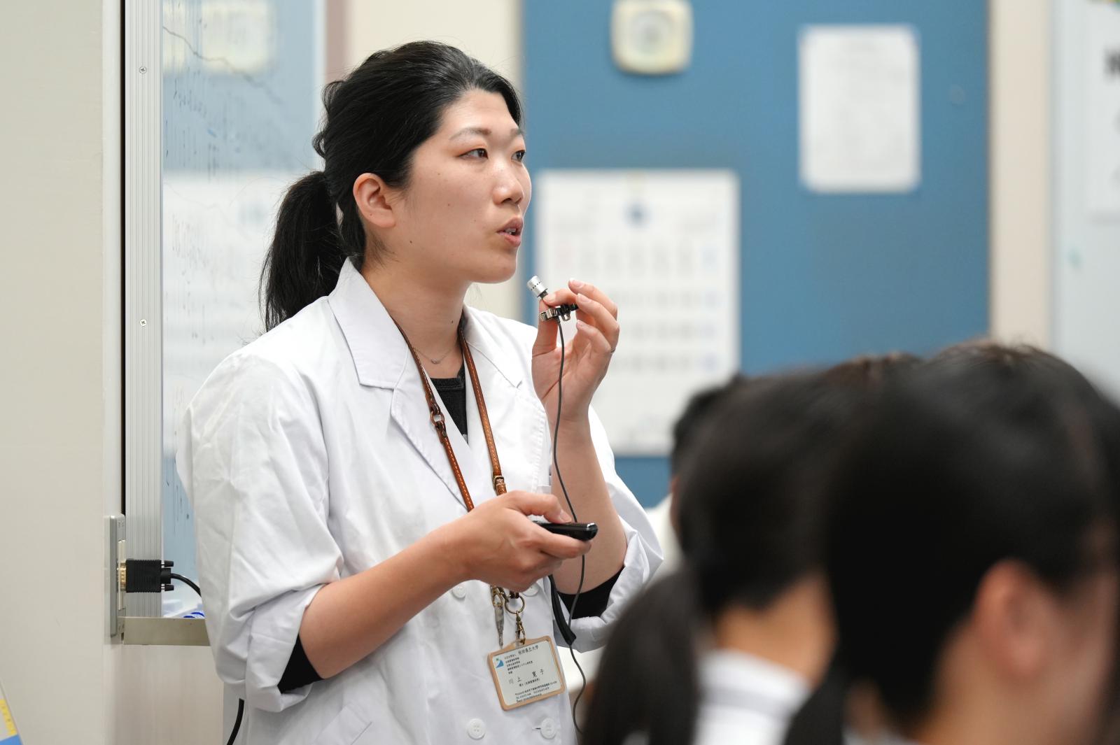 当日は、大学職員による大学概要説明、教員による模擬講義、施設見学を実施し、参加した高校生からは「高校の授業とは全く違う、専門的な学びに触れて、私も早く大学生になりたいと強く思いました」、「研究室の見学が印象的でした。トリカブトの毒と薬の話が勉強になりました」、「先生が自分の研究について熱く語る姿を見て、私も将来は自分の興味関心を深く突き詰めて研究したいという意欲が湧きました」などといった感想が寄せられました。