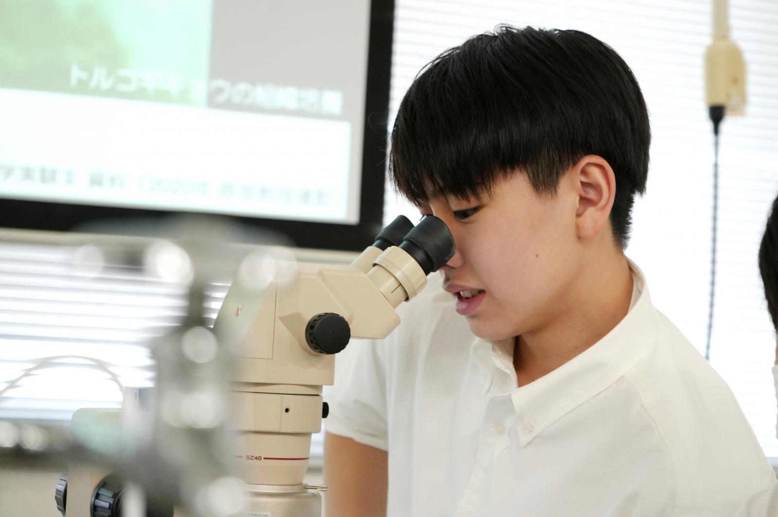 食い入るように顕微鏡の世界に見入っていた