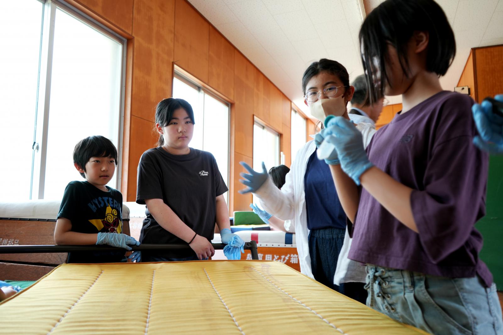 6月21日(土)、午前と午後の2グループに分かれて、教室の机・椅子、体育館倉庫のマット、ピアノの鍵盤、プールなど室内・屋外問わず、児童それぞれの思い思いの場所から、自由な発想で野生酵母のサンプルを採取しました。採取したサンプルは、雑菌の混入を避けるため、清潔なプラスチック容器に入れて採取場所を記録しました。今後、採取した酵母のサンプルは、秋田県立大学の研究室に持ち帰り、パン作りに適した酵母がいるのか遺伝子配列を解析したり、小学校の夏休みに併せて、児童やその保護者を対象に、顕微鏡で観察したり交流を深めることにしています。