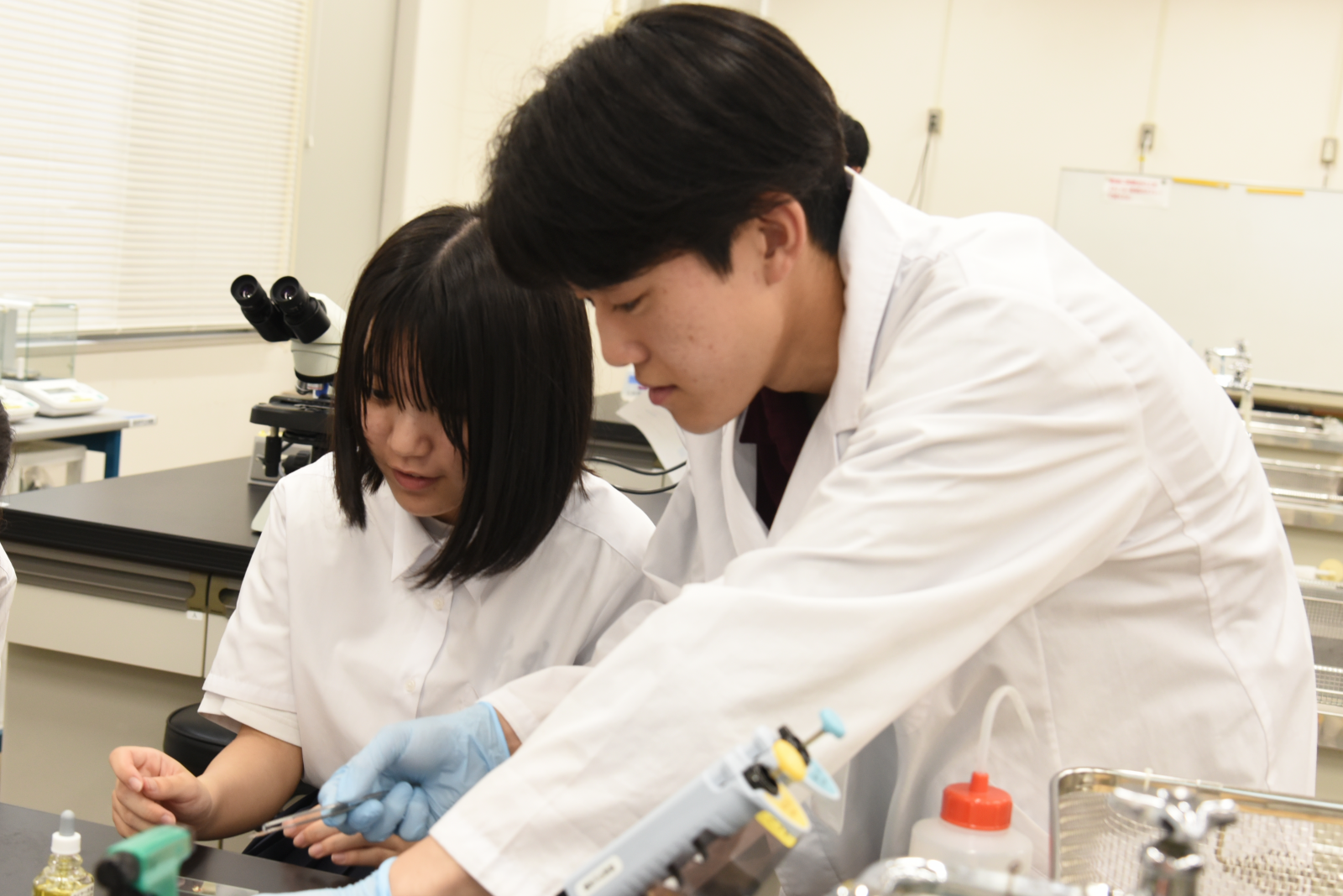 実験補助の学生がサポート