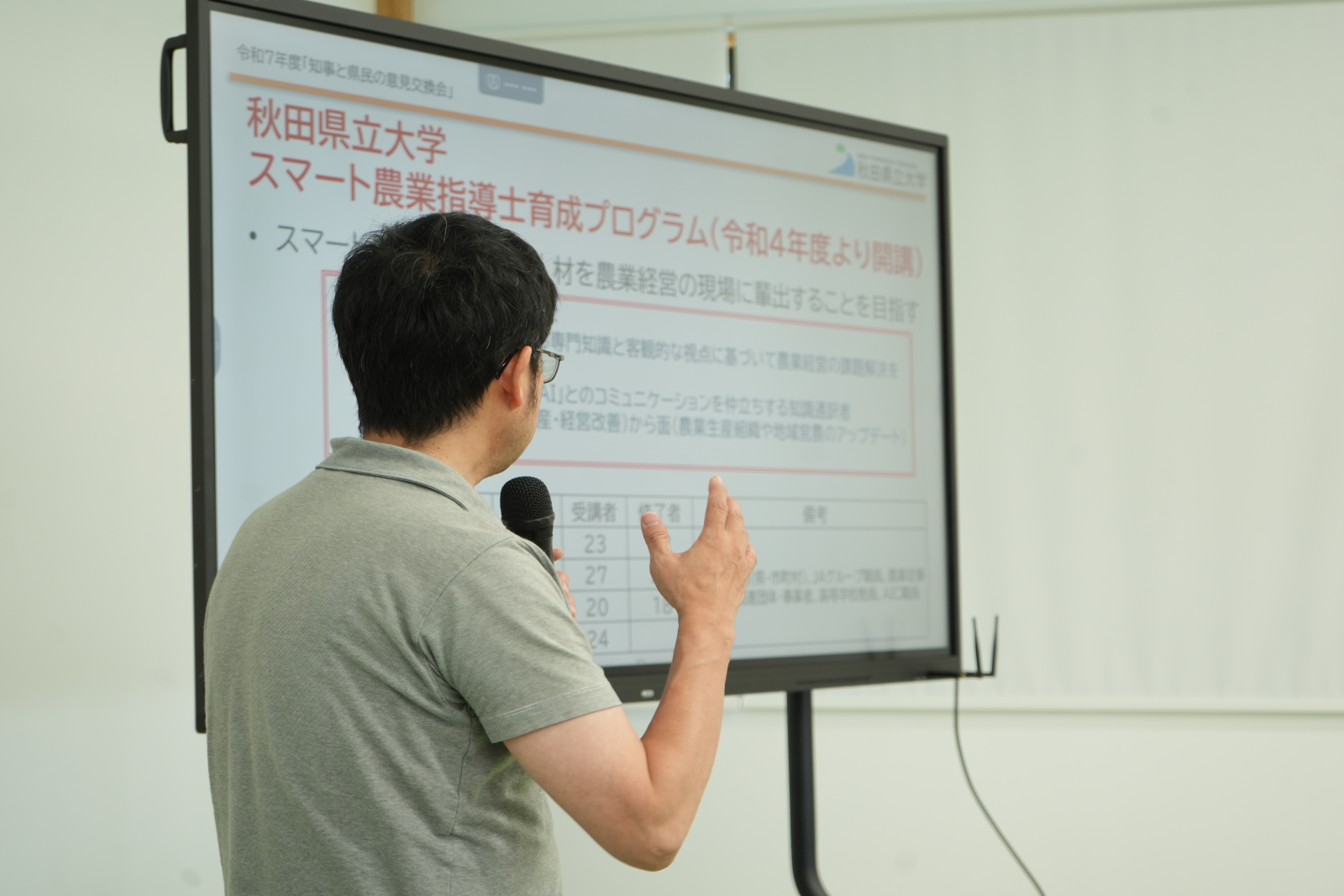 7月12日(土)に、本学アグリイノベーション教育研究センターにおいて、秋田地域振興局が主催する「知事と県民の意見交換会」が開催されました。