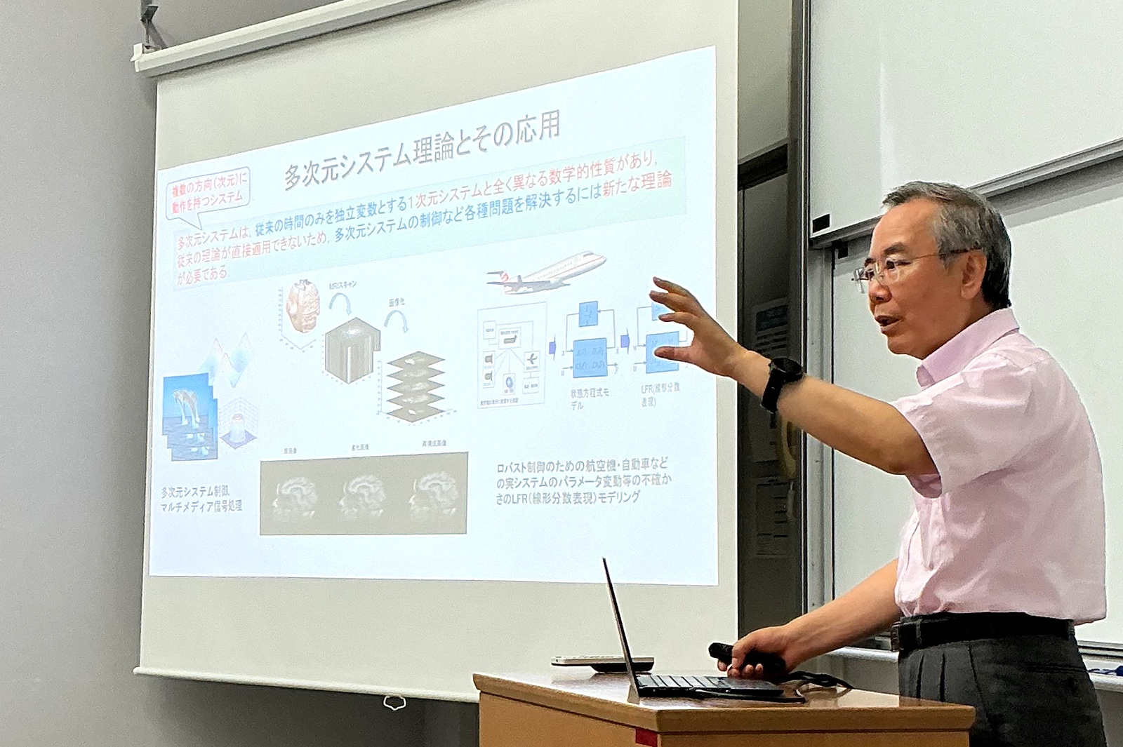 システム科学技術学部長 西田 哲也教授と懇談したあと、互いの大学紹介および交流会を行いました。午後には、蘭州大学の学生と本学大学院生による、本交流プログラムのテーマである数理最適化・データサイエンスに関連する研究発表のほか、徐名誉教授による特別講演が行われました。キャンパス見学では、当時、Yan教授、Zhao准教授が徐名誉教授のもとで学んだ研究室を訪問し、当時の思い出に花を咲かせました。