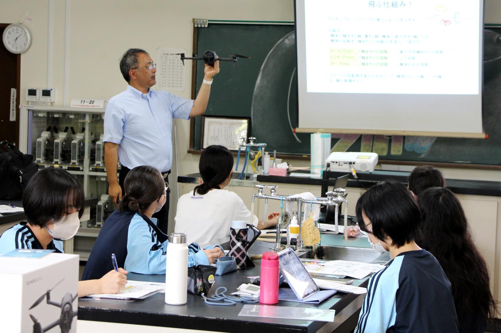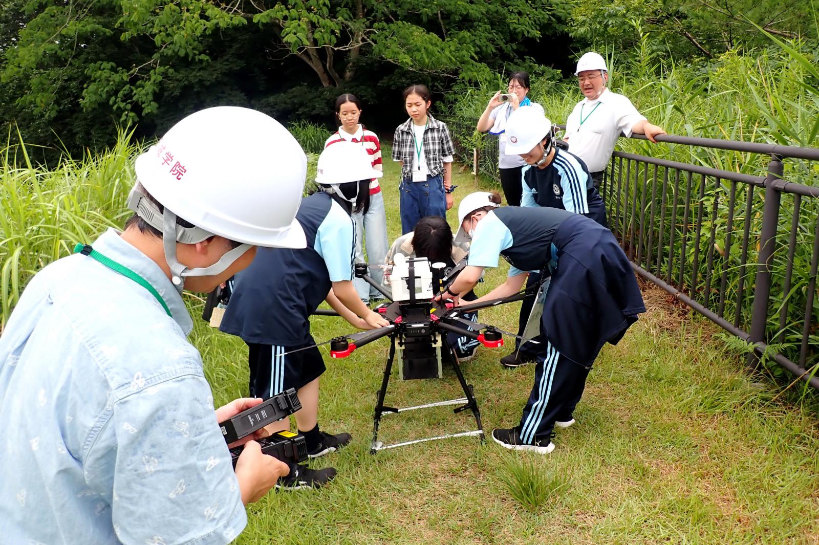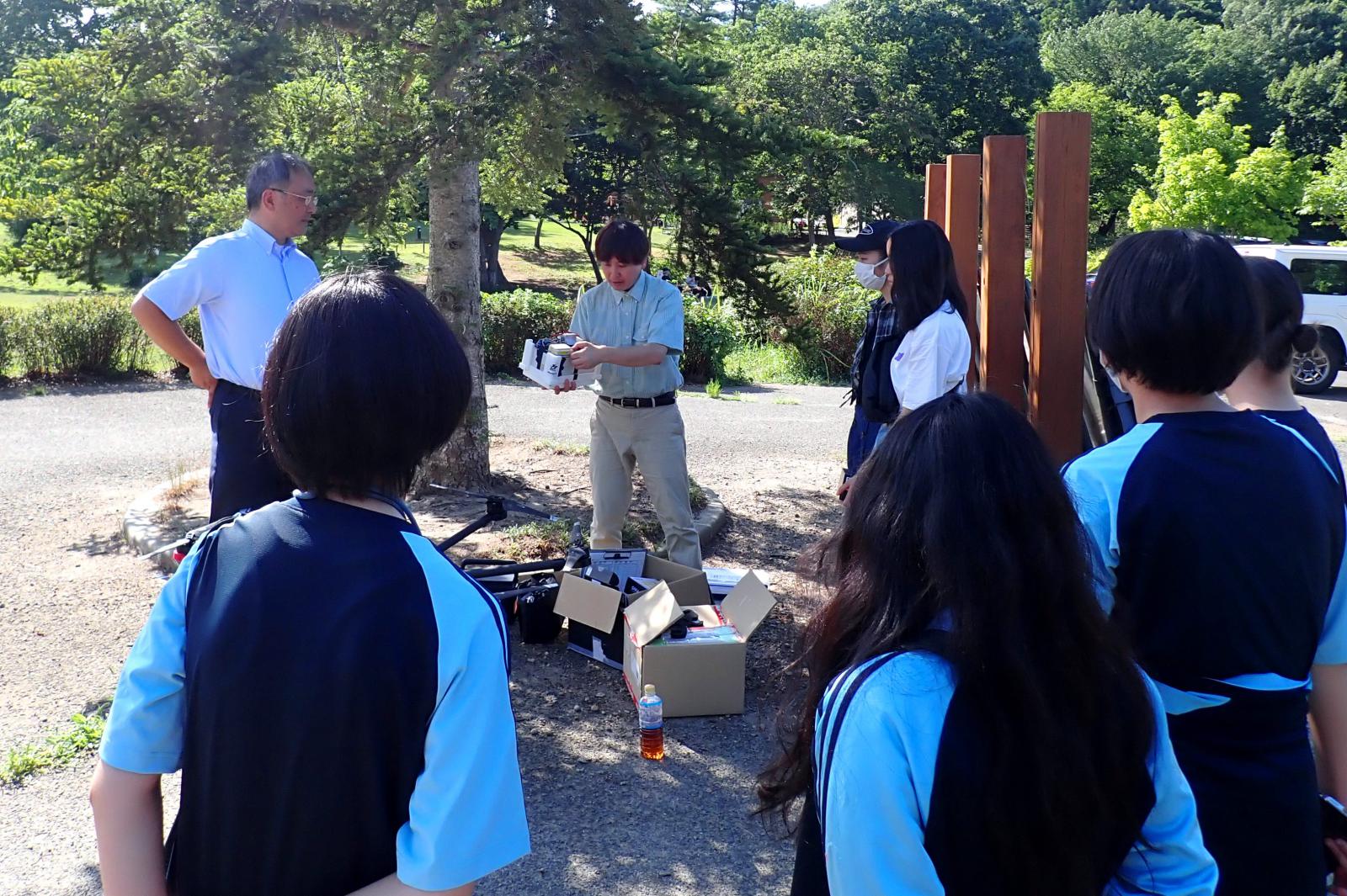 生物資源科学部 生物環境科学科の井上 誠 准教授[専門分野:気象学]、および 同学部アグリビジネス学科の永吉 武志 准教授[専門分野:水理学・河川工学]は、8月5日から7日の3日間にわたり、宮城学院中学校高等学校にて「ドローン操作および温室効果ガス」に関する授業を実施しました。井上准教授と永吉准教授は、本学が開発したCO2観測用ドローンを用いて、上空の温室効果ガスを測定する方法について宮城学院中学校高等学校の高校生5名と神奈川大学附属中・高等学校の高校生2名に指導を行いました。