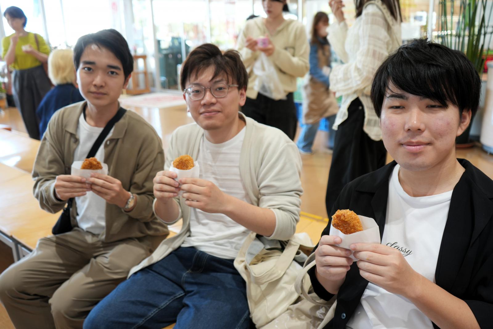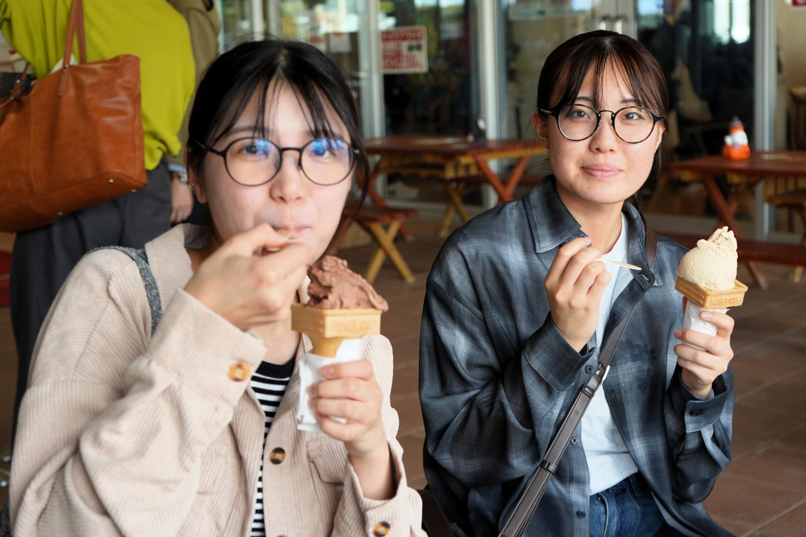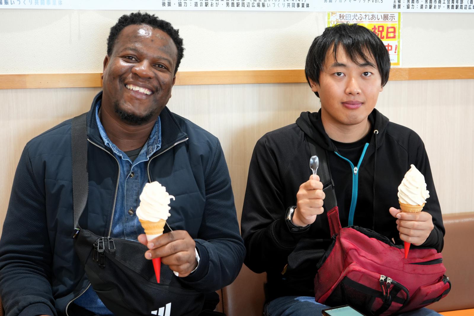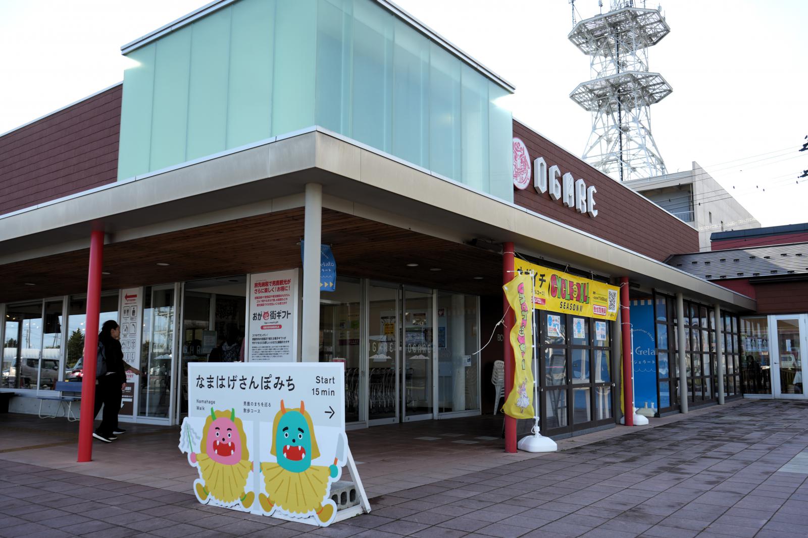 市内周遊観光と地域活性化の拠点となる複合観光施設(愛称:オガーレ)で、お土産を購入したり男鹿のスイーツを楽しみながら、交流を深めました。
