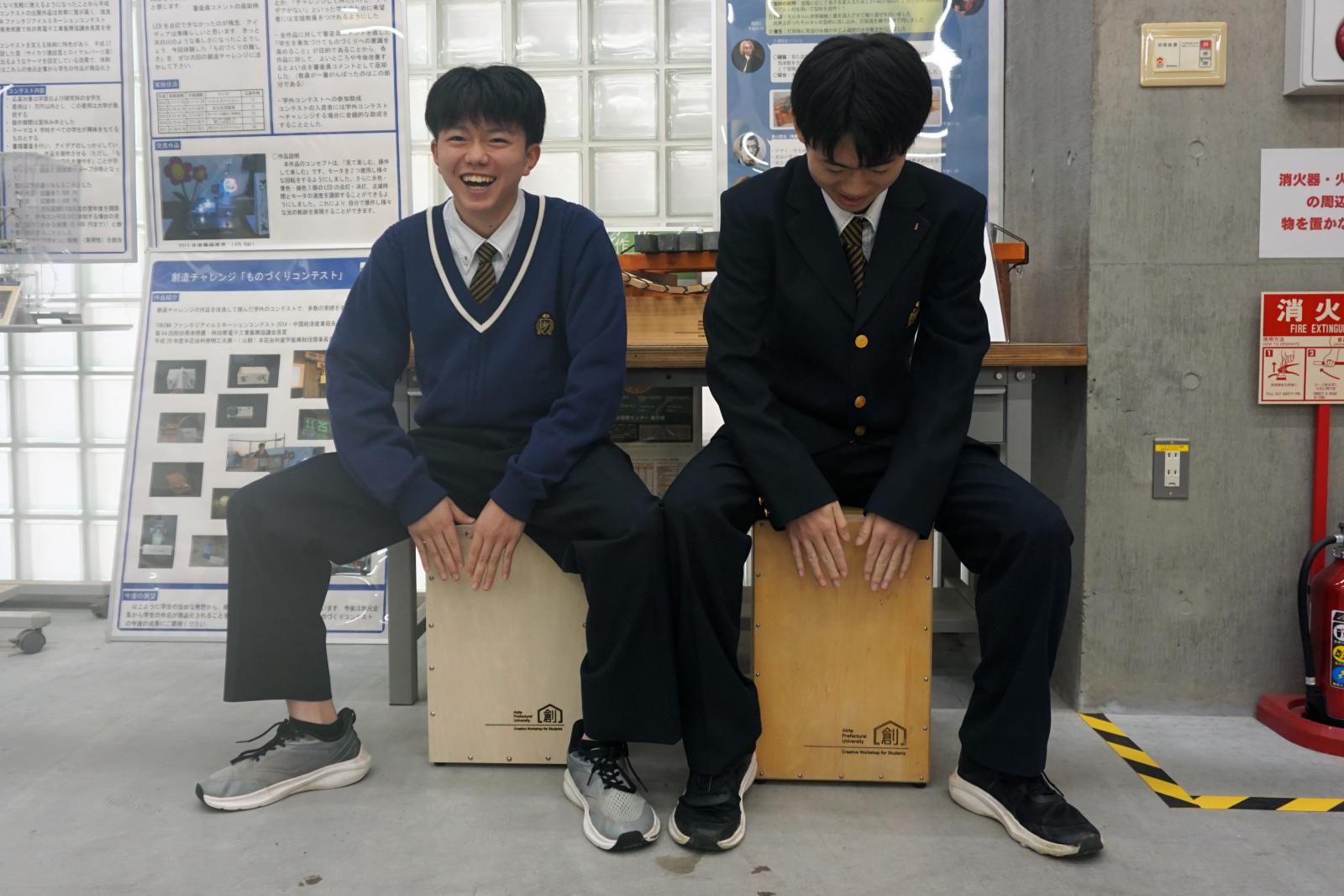 施設見学では、図書館や創造工房など大学ならではの施設を見学。カフェテリアでの昼食体験中には、大学生による優雅なピアノの演奏が披露され、素敵な演奏に聴き入る様子も見られました。大学生からは、「色んな地域から学生が集まっていて楽しいよ!ぜひ秋田県立大学に!」とメッセージが送られ、大学生との交流を楽しみました。