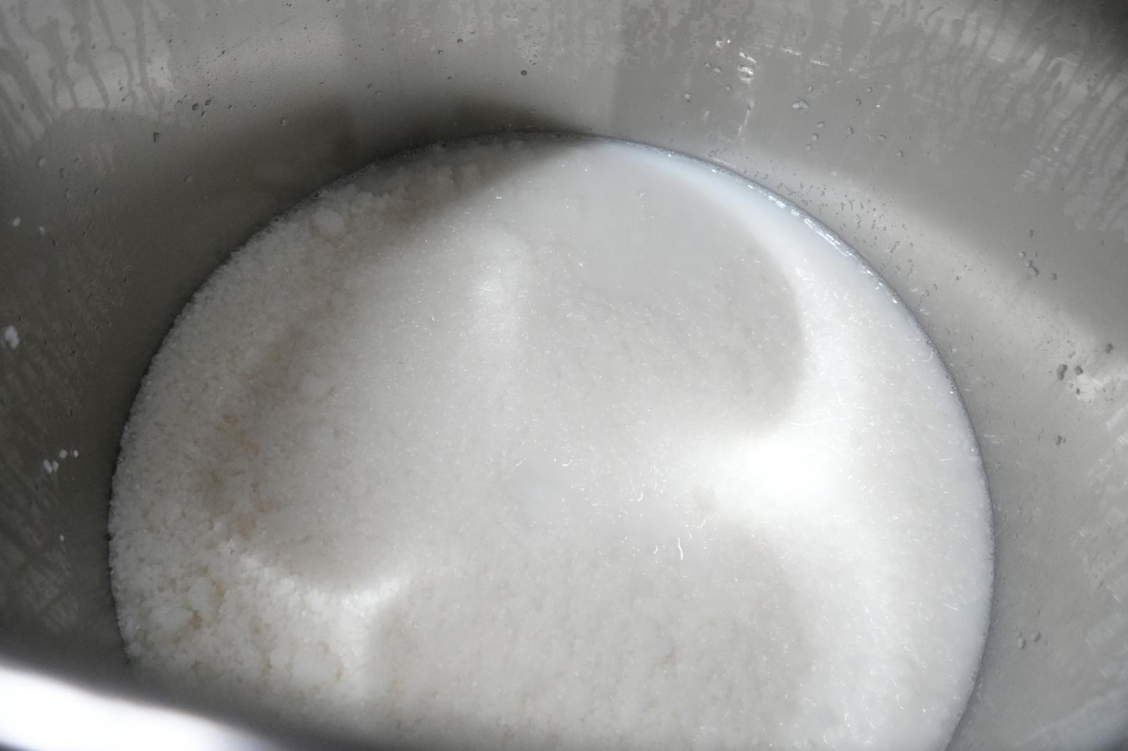 酒母タンク内で電動ドリルにより攪拌し摺りつぶす